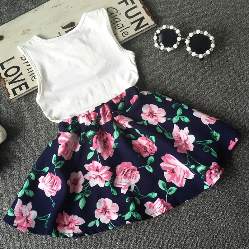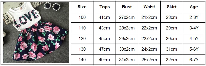 | Hello! Welcome to our store! Quality is the first with best service. customers all are our friends. Attention plz: If your kid is chubby, we recomend choosing a larger size, thanks. What You Get: 1 x Girls Tops+ 1x Skirt Preview