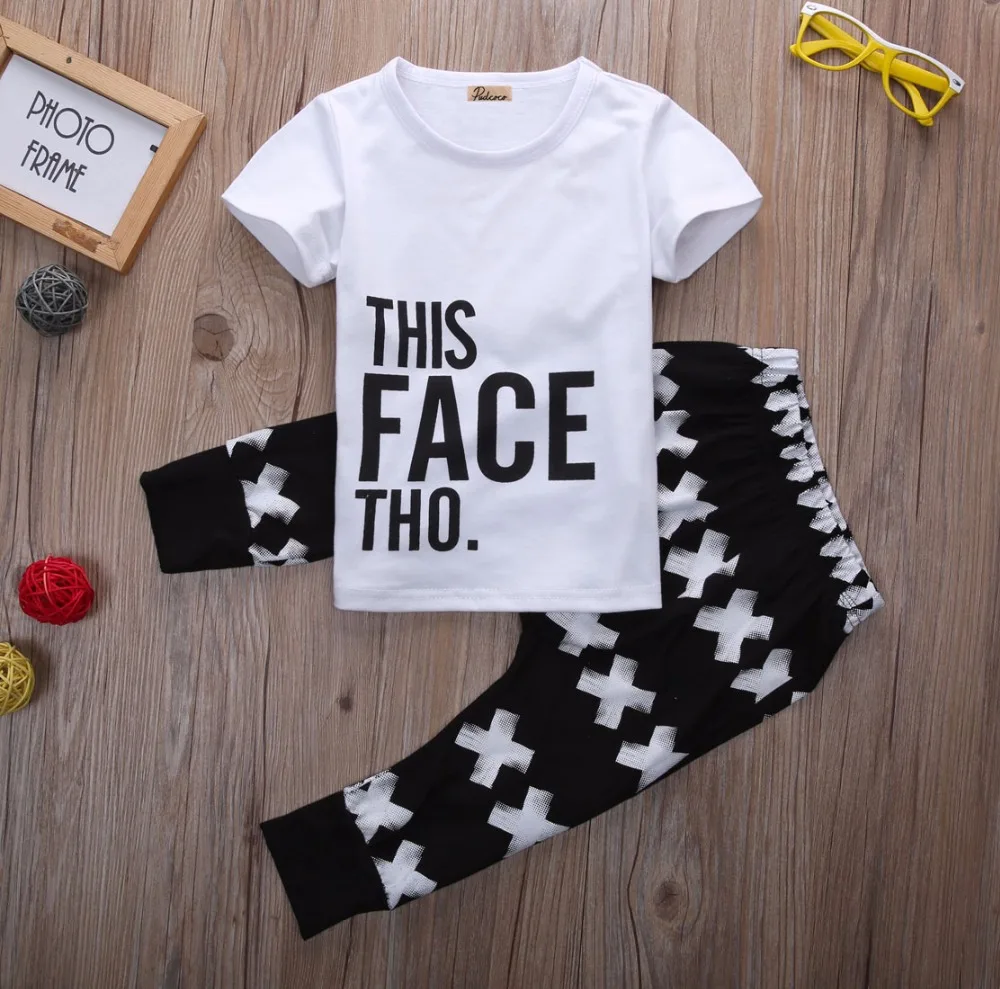 2016 Newest Fashion Baby Kids Clothes Outfits!! High quality and Brand new 100% Main Color: AS The Picture New in Fashion Material: Cotton Blend Attention plz: If your kid is chubby, we recomend choosing a larger size, thanks. Please kindly refer to your kids actual height and the size chart before buying/bidding. Thanks. Package included: 1x Tops + 1x Pants Size Chat : | Size | Top Length | Bust*2 | Pants Length | Age | | 80 | 37 cm | 27 cm | 42 cm | 0-1 Years | | 90 | 39.5 cm | 28 cm | 45.5 cm | 1-2 Years | | 100 | 42 cm | 29 cm | 49 cm | 2-3 Years | | 110 | 44.5 cm | 30 cm | 52.5 cm | 3-4 Years | | 120 | 47 cm | 31 cm | 56 cm | 4-5 Years |