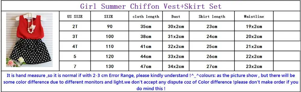 2pcs clothing set : top vest +skirt (Doesn’t including the beads necklace ), please kindly note it ! 🙂