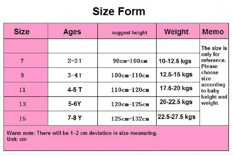 T ag size 11 is for 4 years, T ag size 13 is for 5&6 years, T ag size 15 is for 7&8 years. Tag size is not ages,please note.