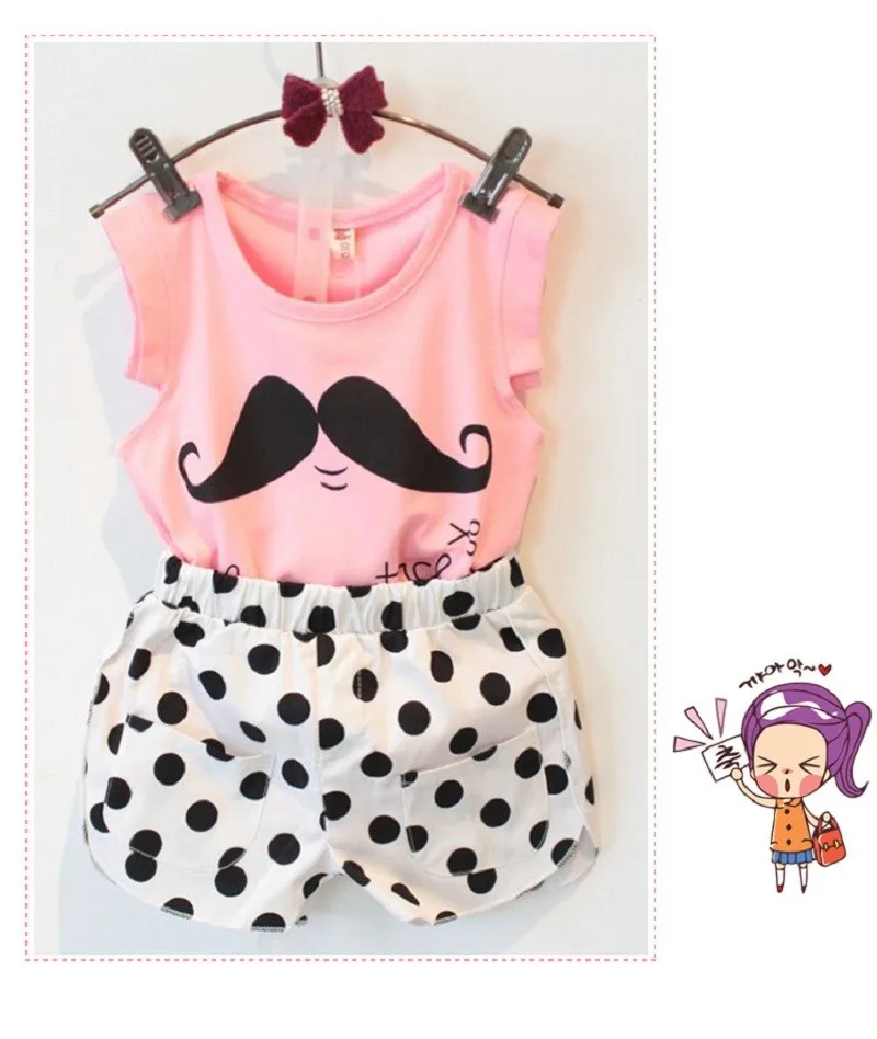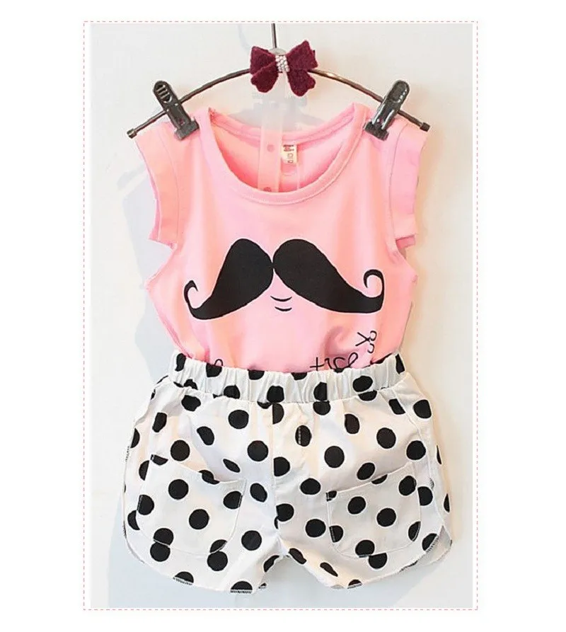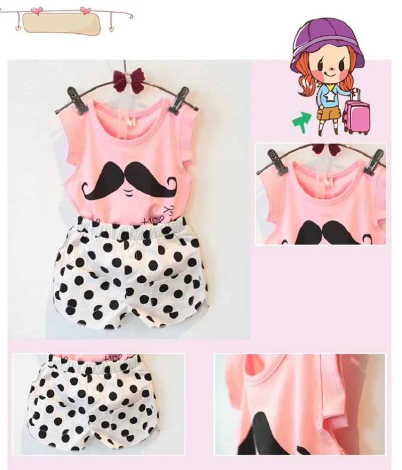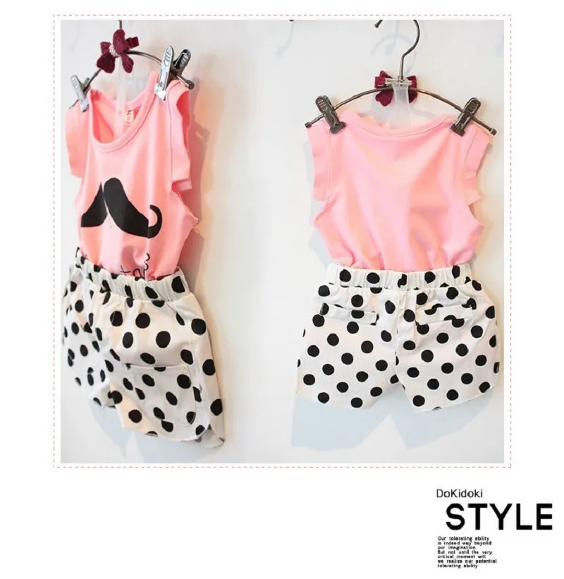 2017 Summer Tsaujia Brand Baby Girls Clothing Set Sleeveless T-shirt+Polka Dot Pant 2pcs Kids Cotton Clothes Set 2-8 Years KF064