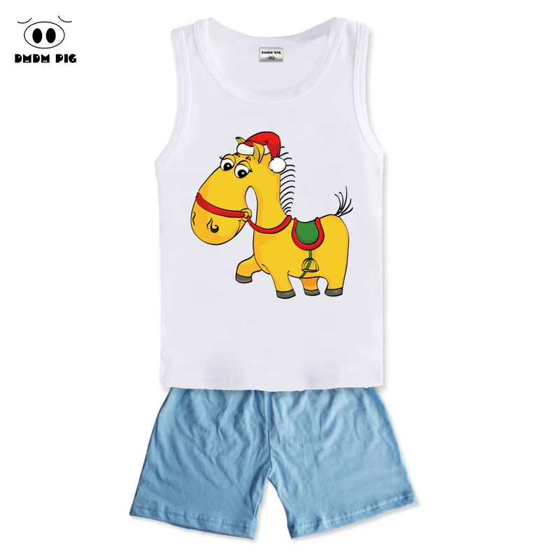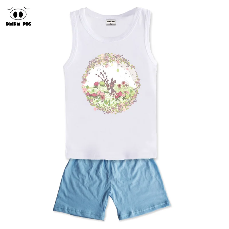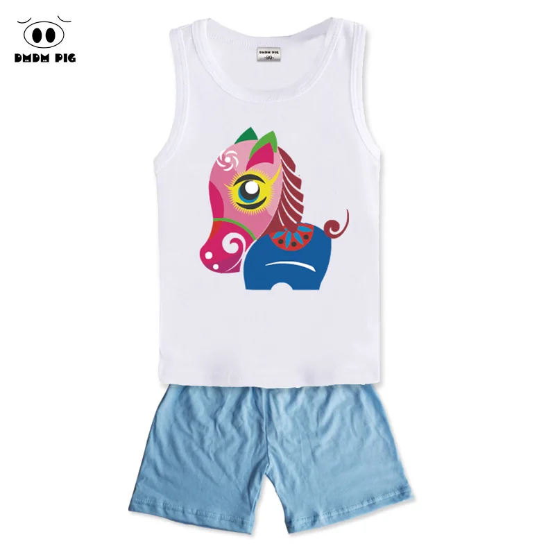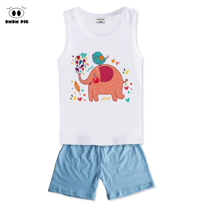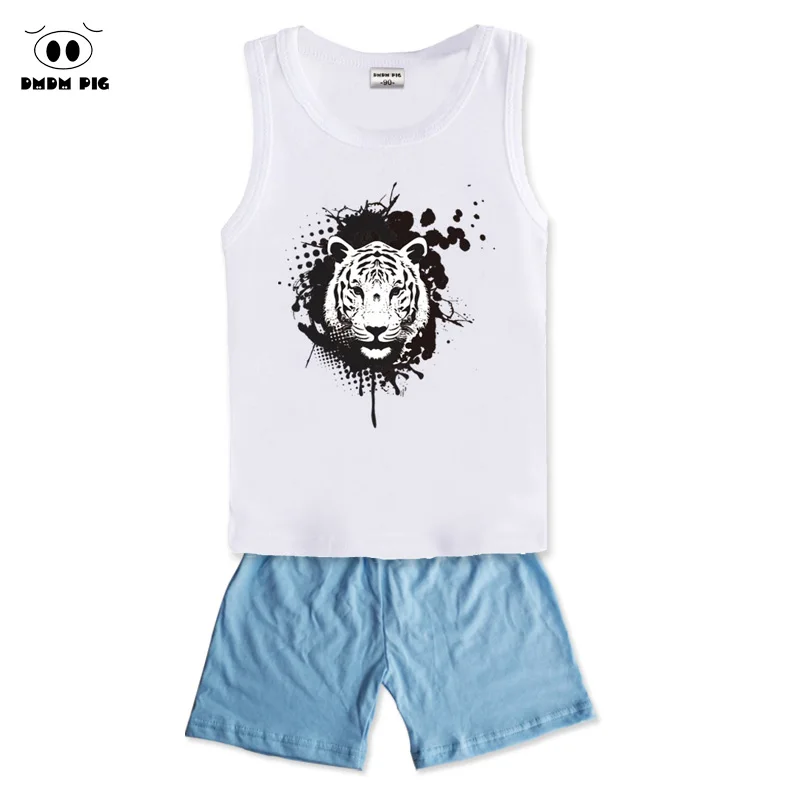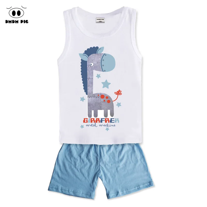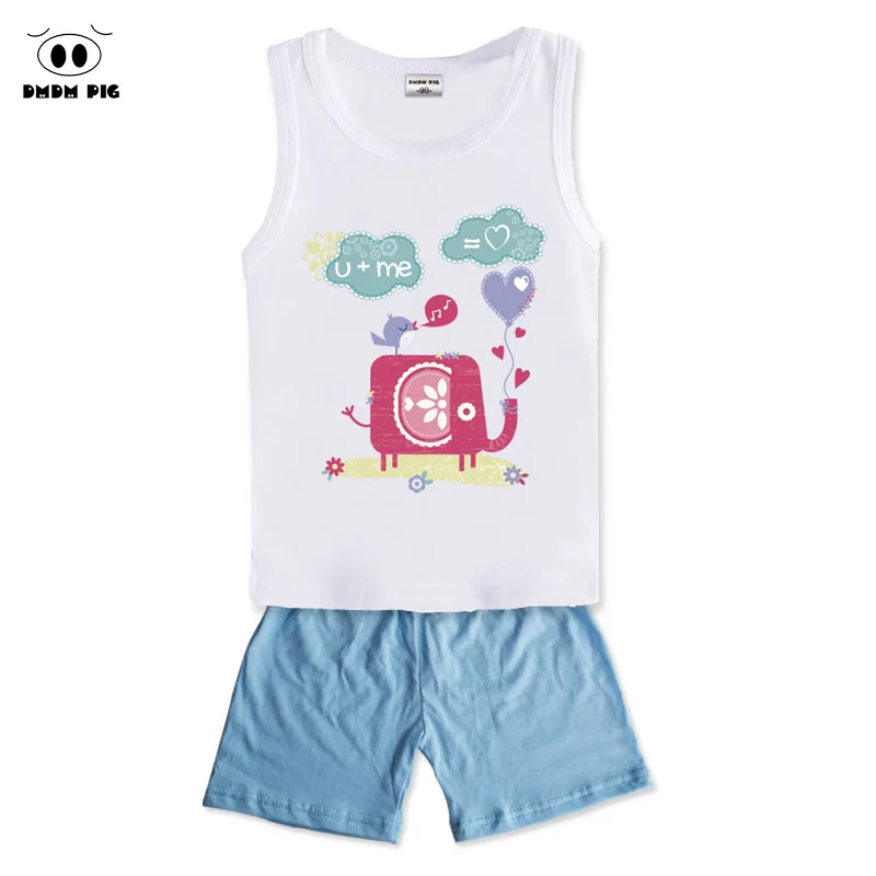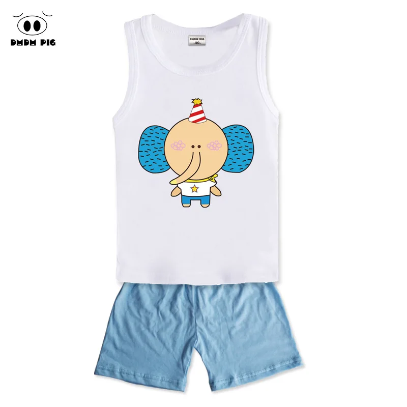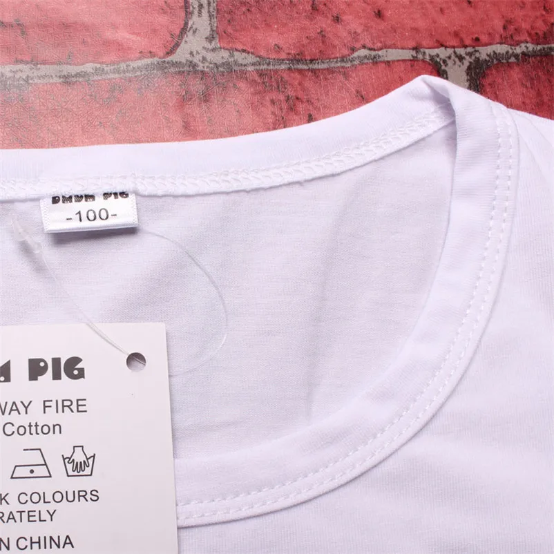 Material:100% Cotton Color:White Collar:O-Neck Brand:DMDM PIG Size in age:3T-4T-5T-6T-7T Size in height: 90cm-100cm-110cm-120cm-130cm Package:1 pcs t shirt + 1 pcs pant