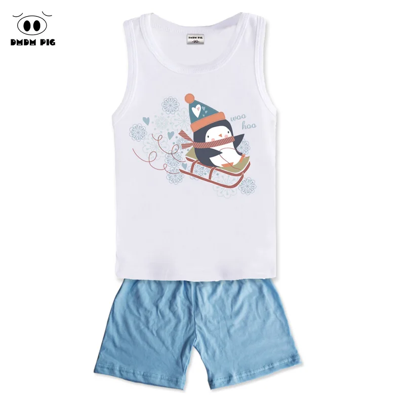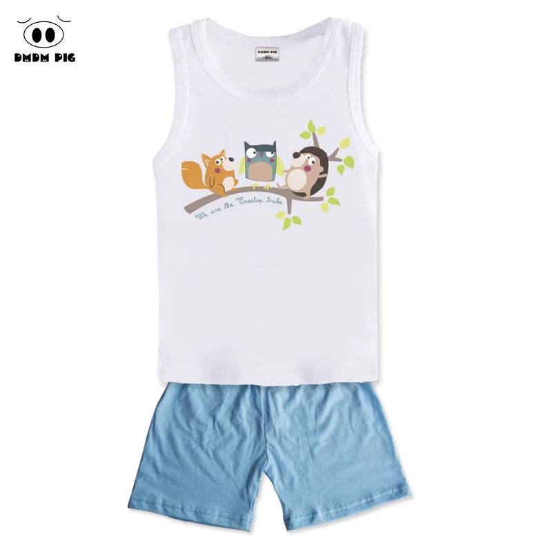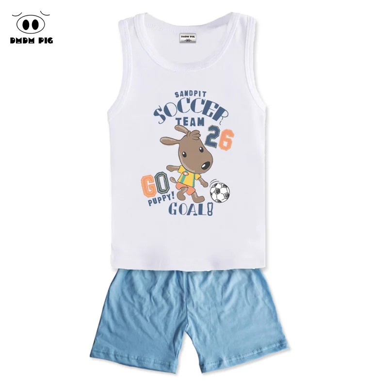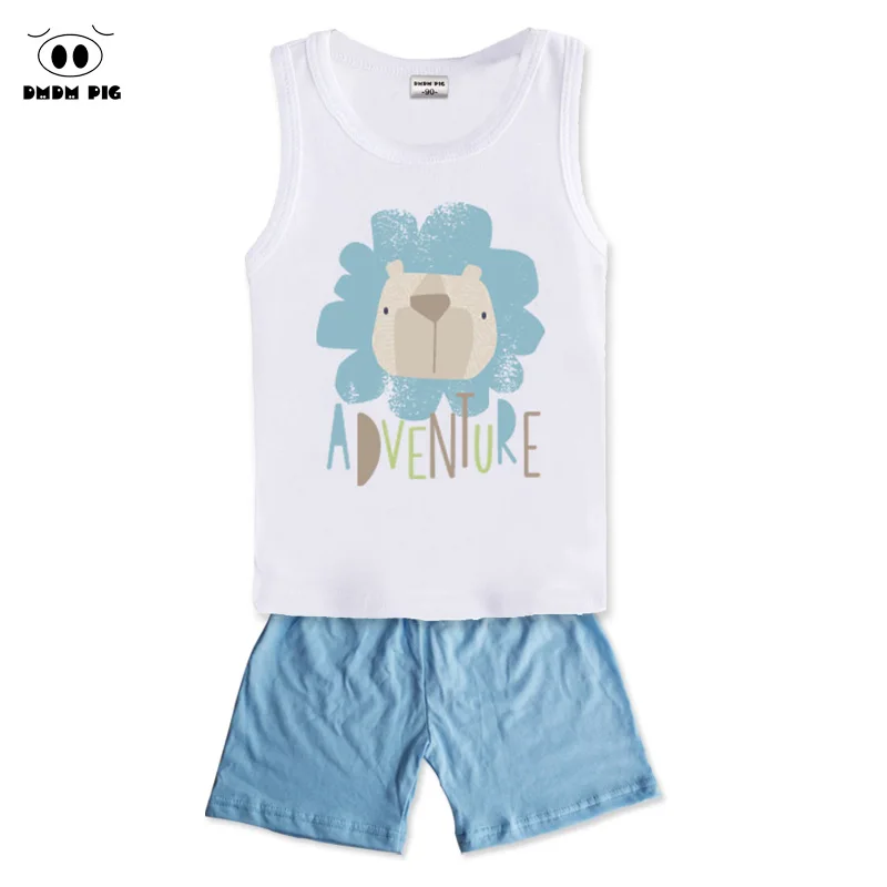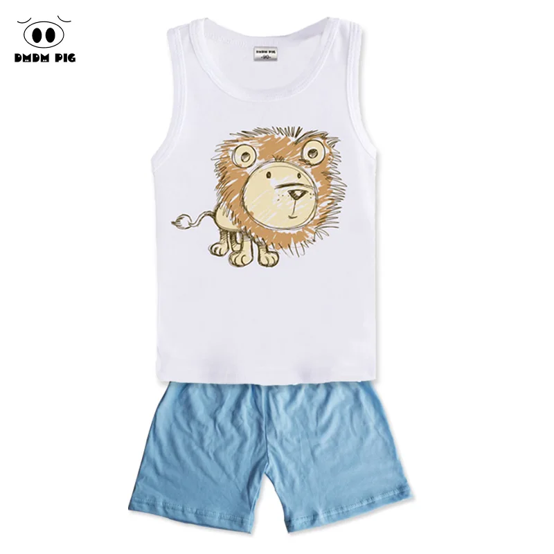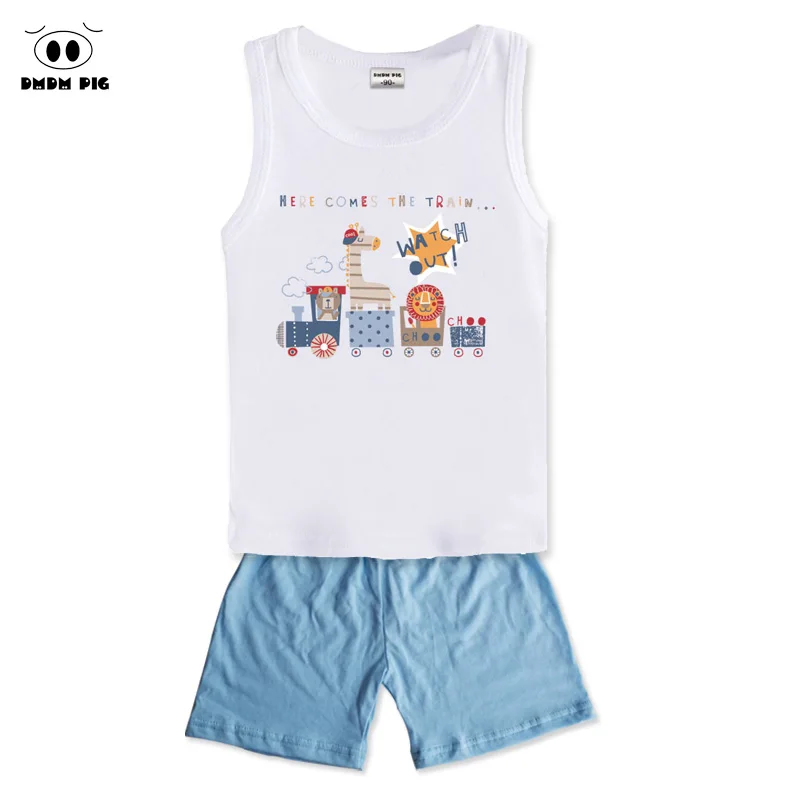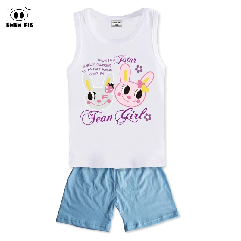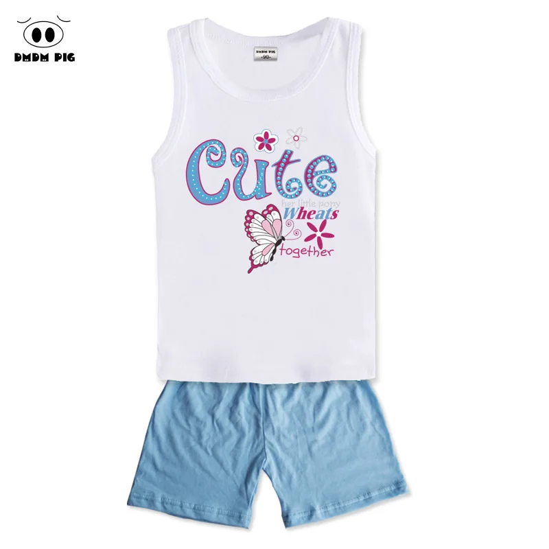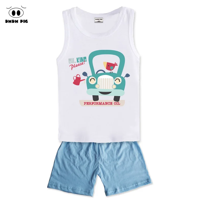 Material:100% Cotton Color:White Collar:O-Neck Brand:DMDM PIG Size in age:3T-4T-5T-6T-7T Size in height: 90cm-100cm-110cm-120cm-130cm Package:1 pcs t shirt + 1 pcs pant
