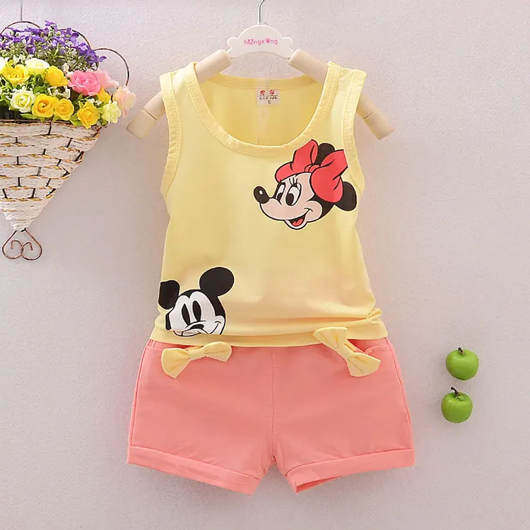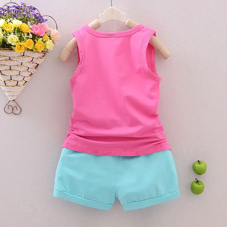 Hot Sale New summer Toddler Girls Clothing Sets Cartoon Vest + Shorts 2 Pcs Kid Suits Children Clothing Sets 4 Color
