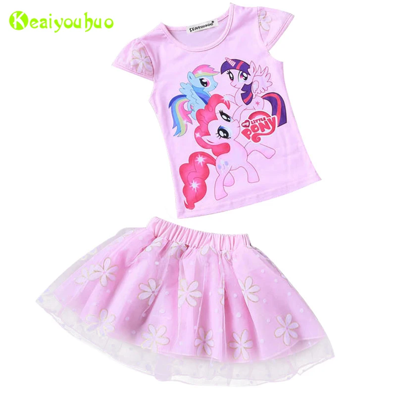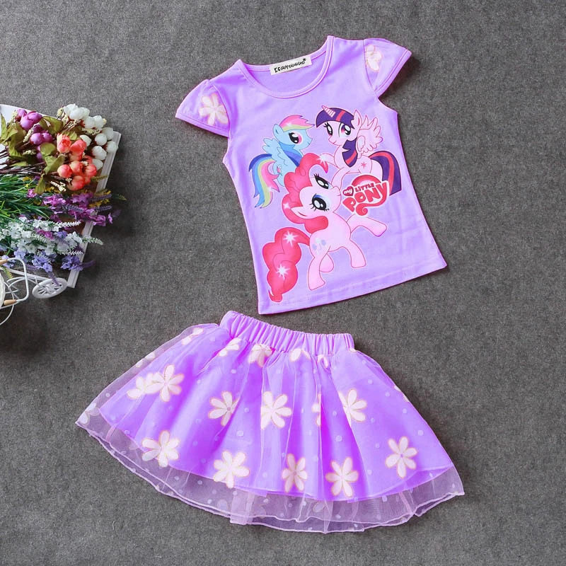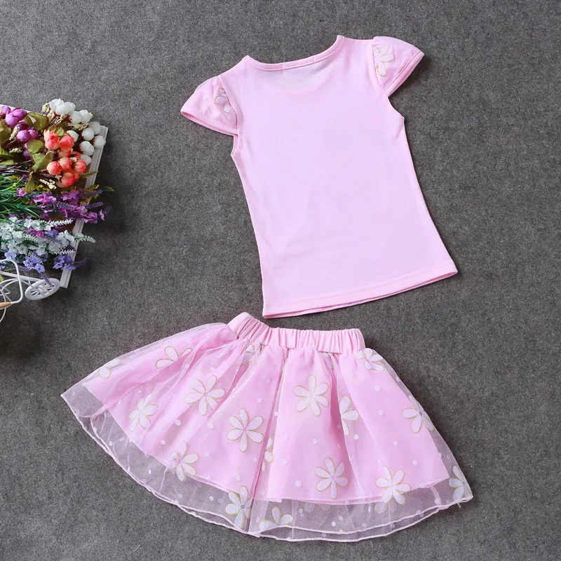 2017 Summer Children Clothing Sets Cartoon Casual T-Shirt + Tutu Skirt 2 pcs Kids Clothes Fashion Skirt Suit Girls Clothing Sets