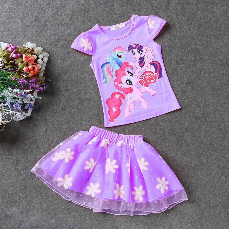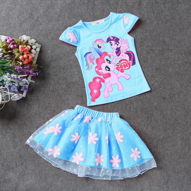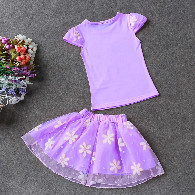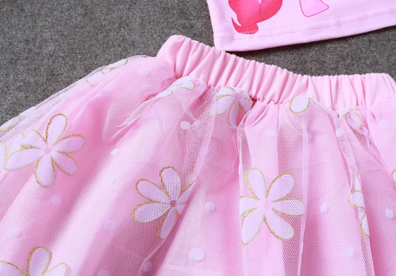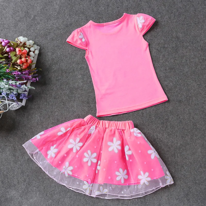2016 Summer Children Clothing Set Cartoon Print T Shirt+Tulle Tutu Skirt Suit 2pcs Fashion Casual Christmas Girls Clothes Sets