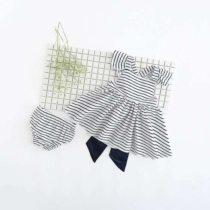 New 2017 Summer Baby Girls Clothing Sets Fashion Big Bowknot Striped Dresses + Shorts 2pcs/lot Girls Clothes Brand Kids Suits