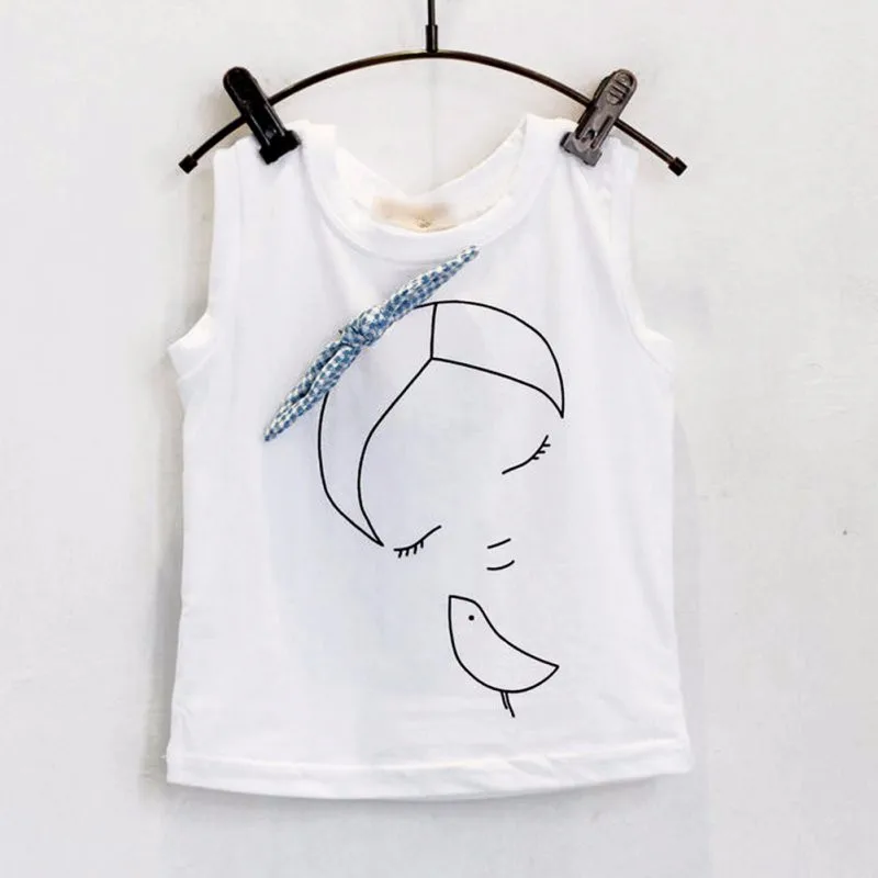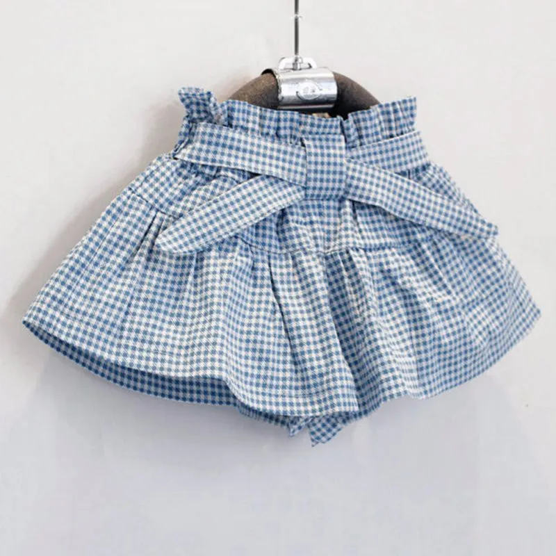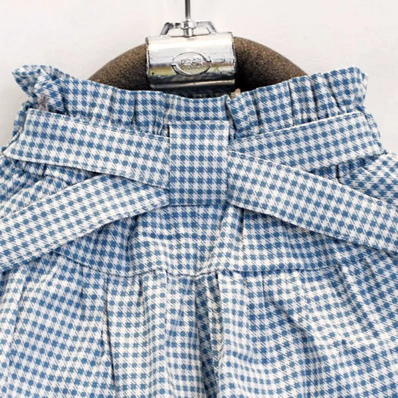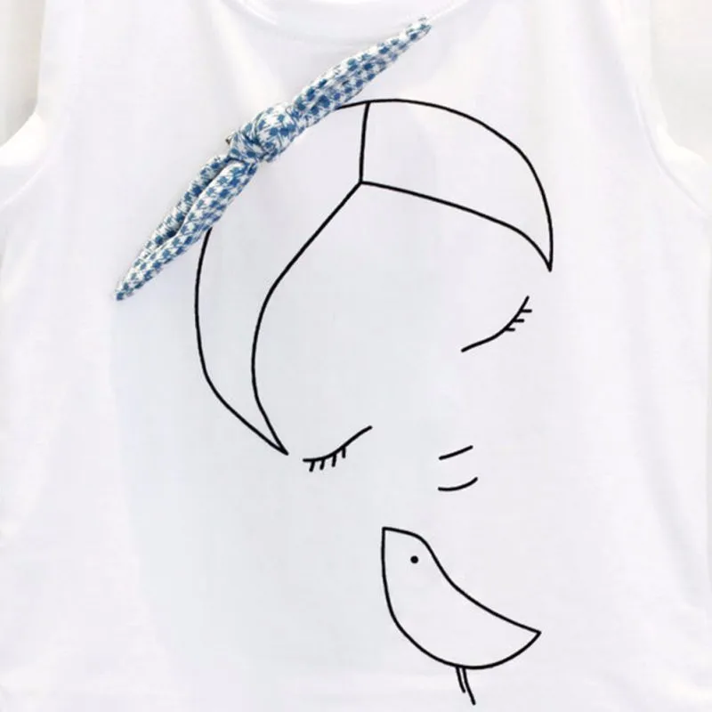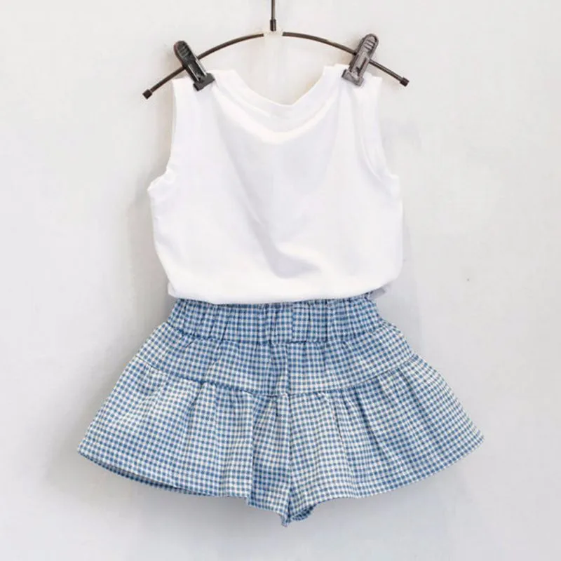 2pcs Baby Girls Summer Clothes Set Cute White T Shirt and Plaid Blue Pants for 2-6 Years Old
