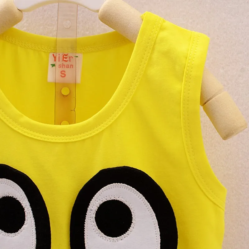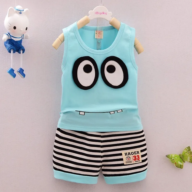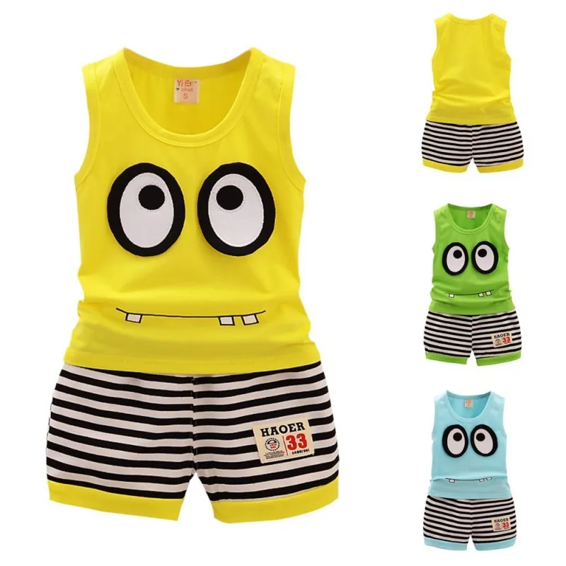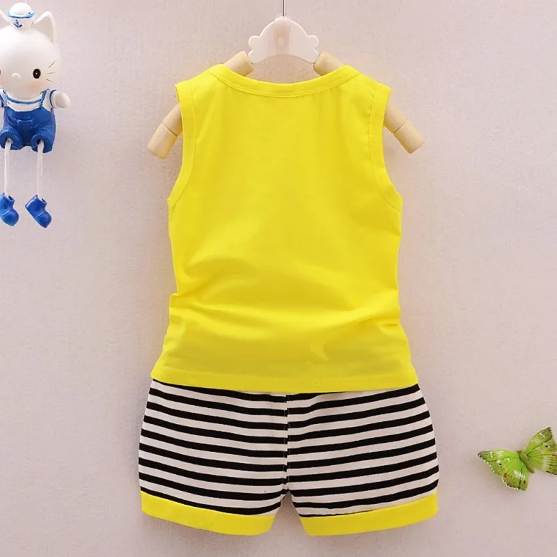 Summer Kid Clothes Set Cotton Cartoon Style Baby Boy/Girls Vest+ Stripe Shorts 2pcs Clothing Set Children Sport Suit