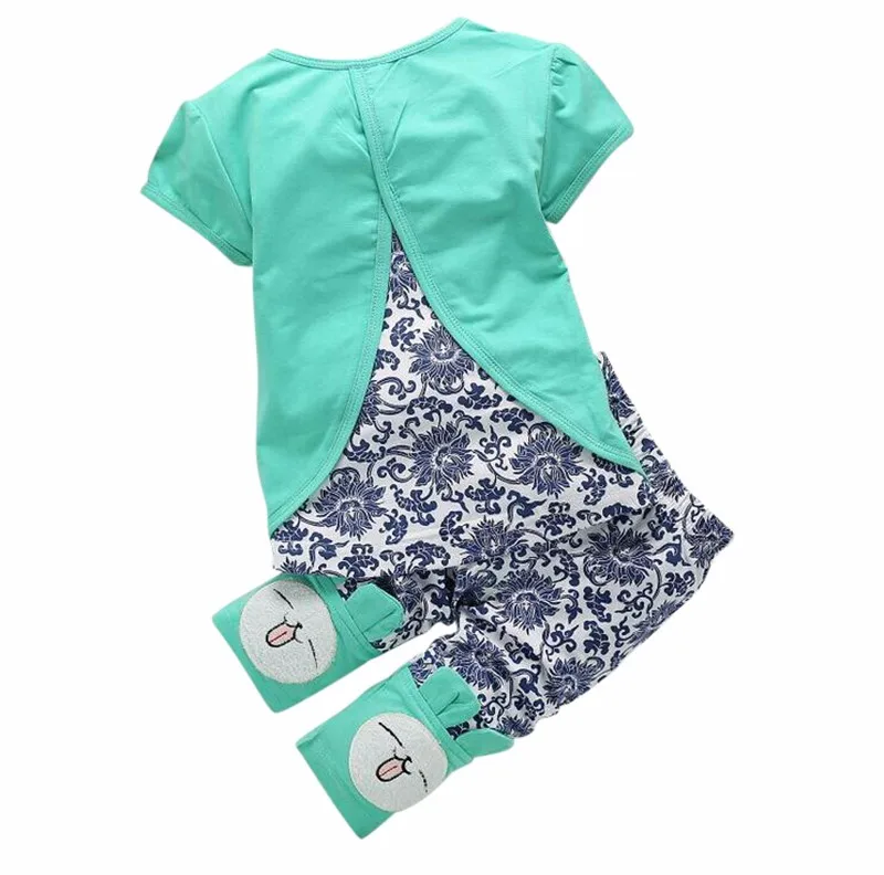 Baby Kid Summer Pink green little rabbit suit pants cartoon set of children Sets