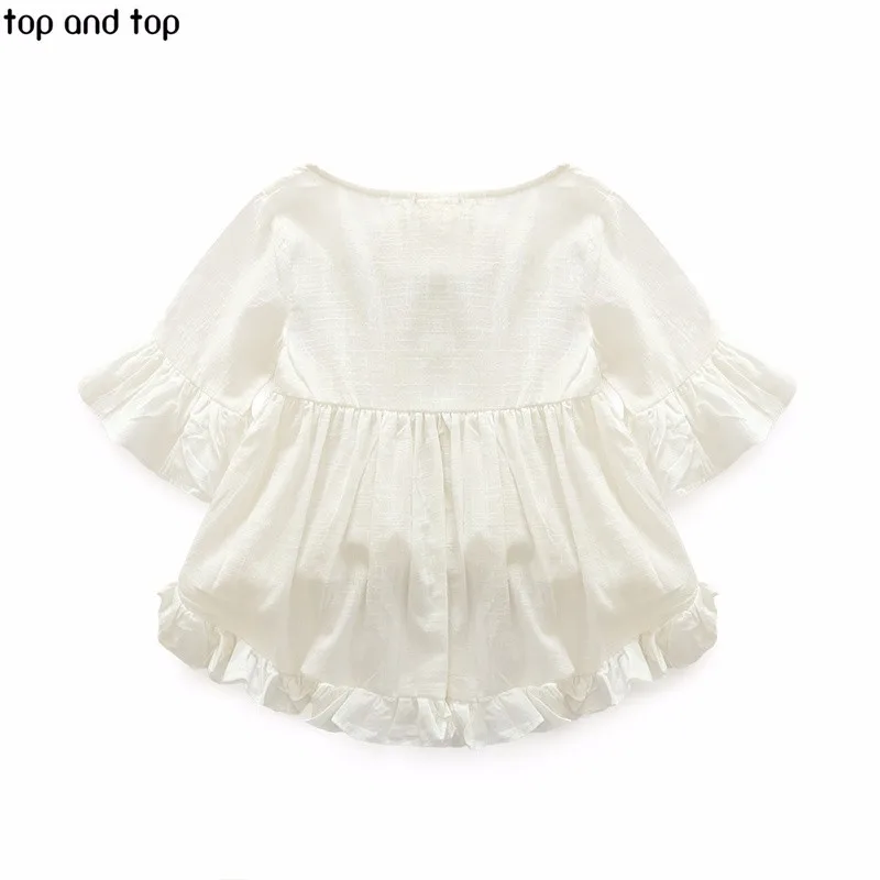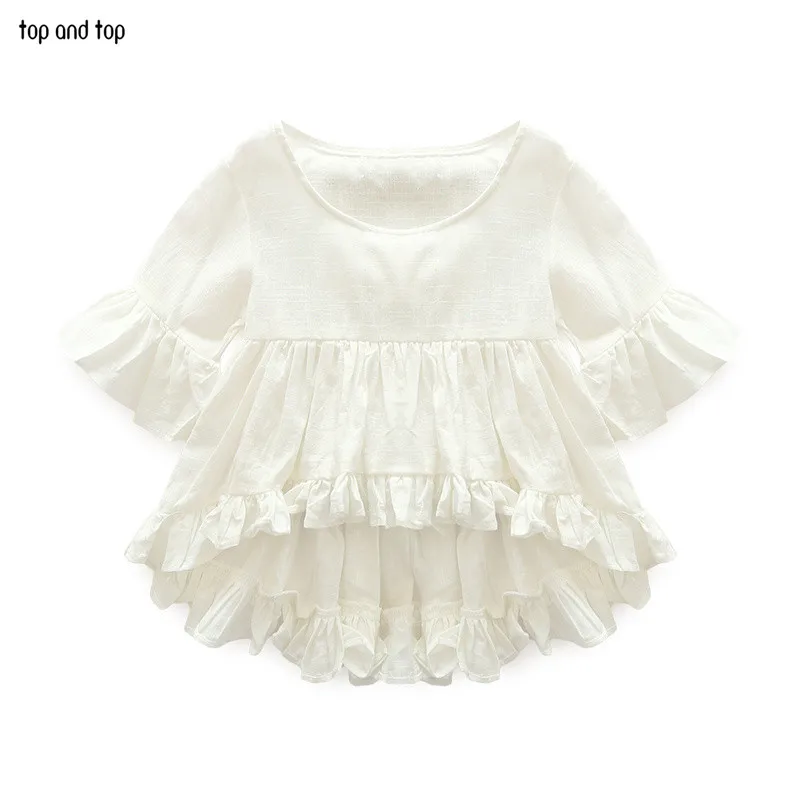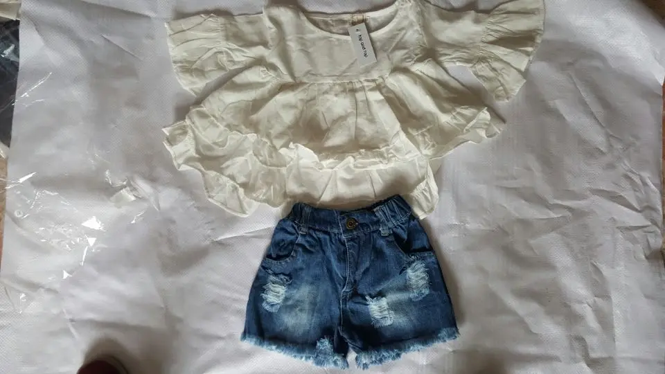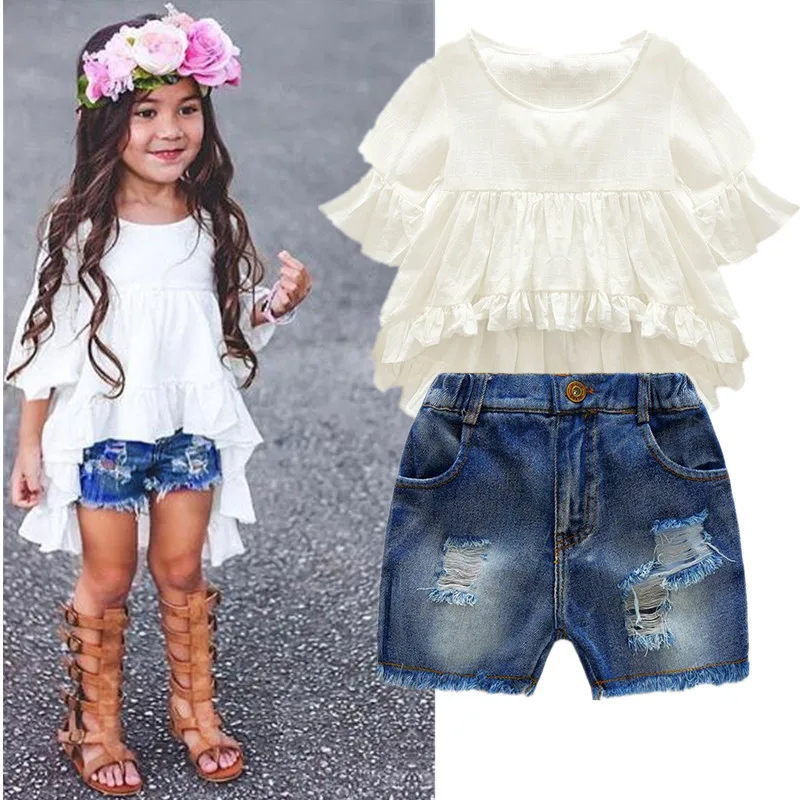 Top and Top High Quality New Fashion Girls Clothing Kids Clothes Fairy Style Cotton Flounced Sleeves Casual Coat Jeans