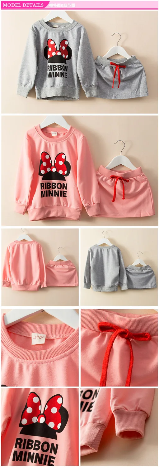 Cotton blended fabrics 2017 baby clothes set Autumn Girls clothing Minnie bow skirt suit children suit children suit wholesale children’s skirt suits