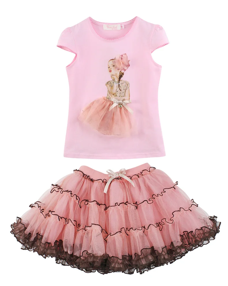 2017 fashion brand summer children clothing Princess girls boutique outfits sets ruffle tops short layer lace tutu skirt suits