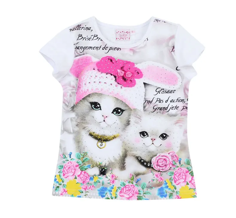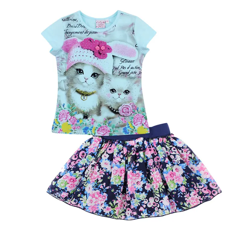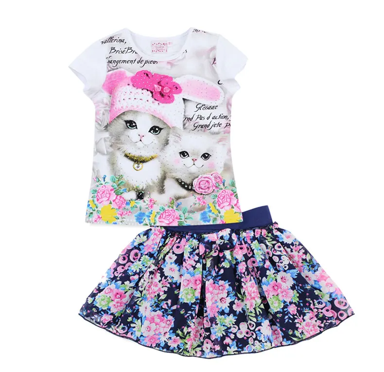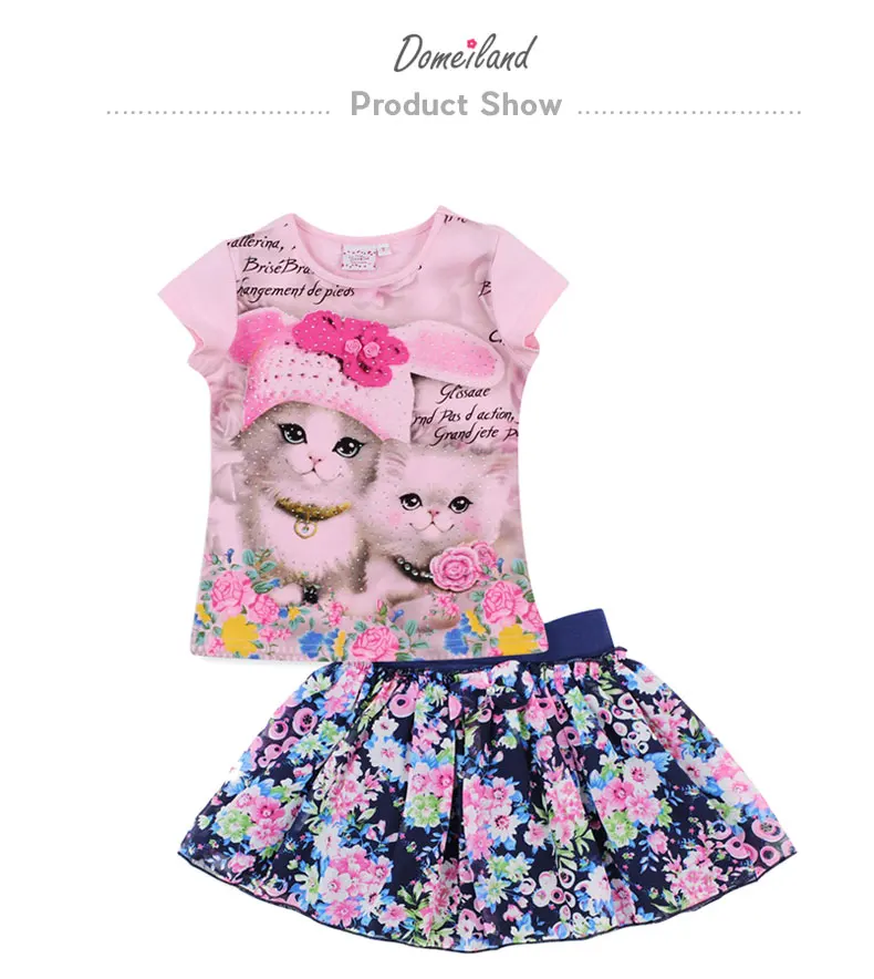 2017 fashion domeiland summer children clothing sets kids girl outfits 3d cat short sleeve cotton shirts with skirt baby clothes