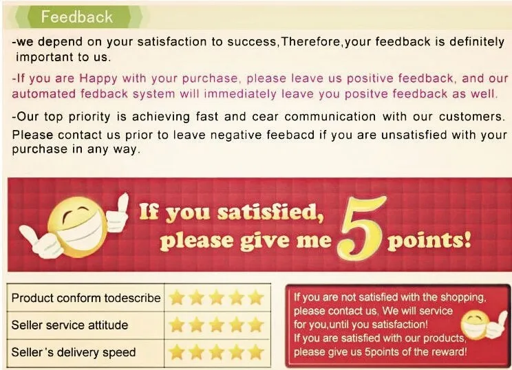 2) It would be highly appreciated if you could leave us a positive feedback, which will be a great encouragement for us!!!