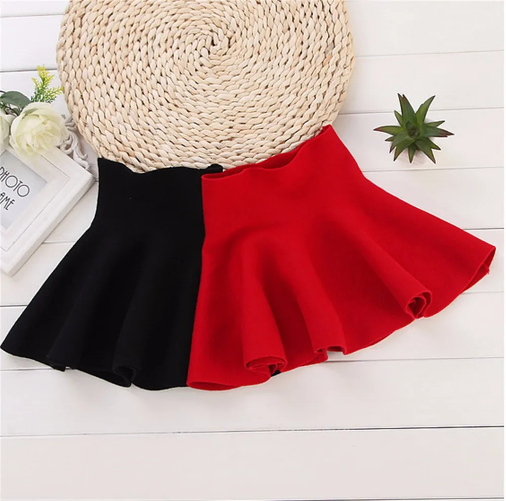 Autumn Winter Girl Skirts Baby High Waisted Skirt Girls Knit Skirts Children Solid Cotton Princess Party Pleated School Skirt