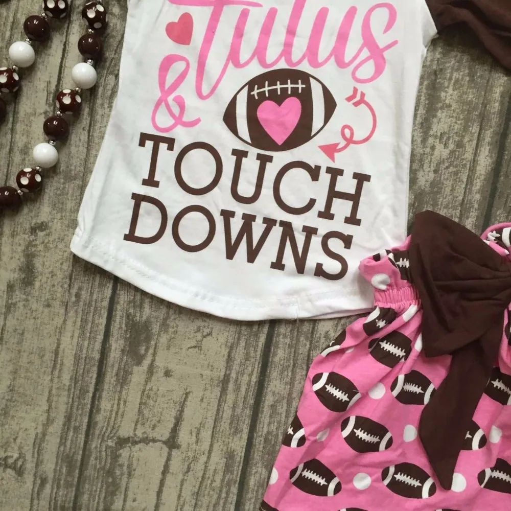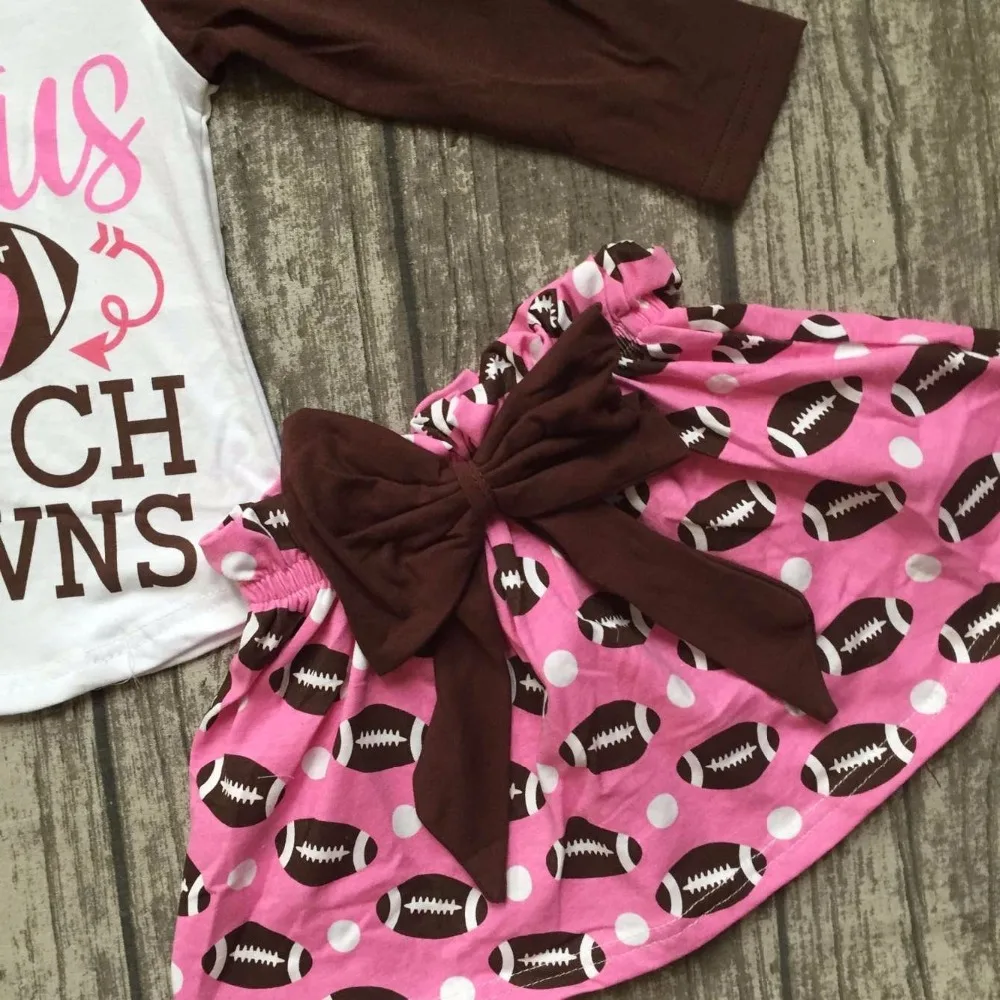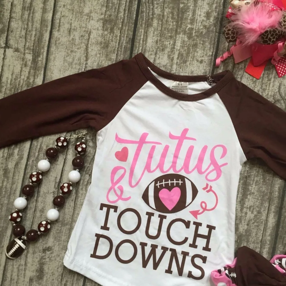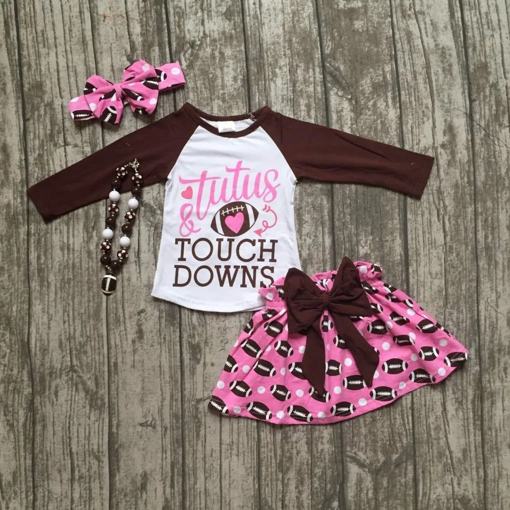 Football clothes tutus touch downs Fall baby girls boutique skirt ruffle hot pink long sleeves bow heart with matching accessory