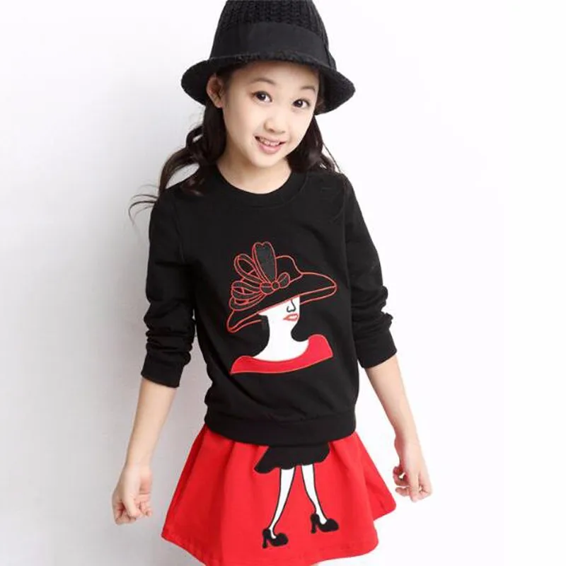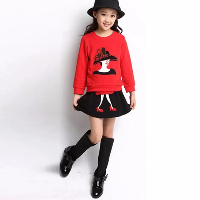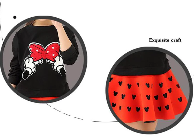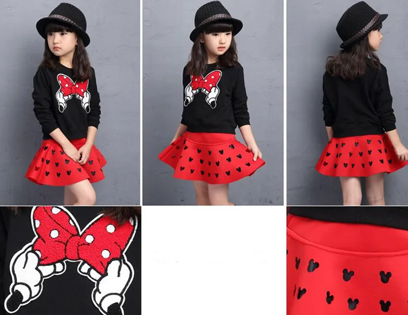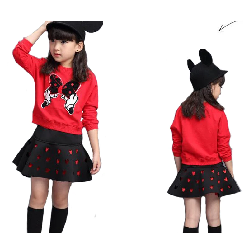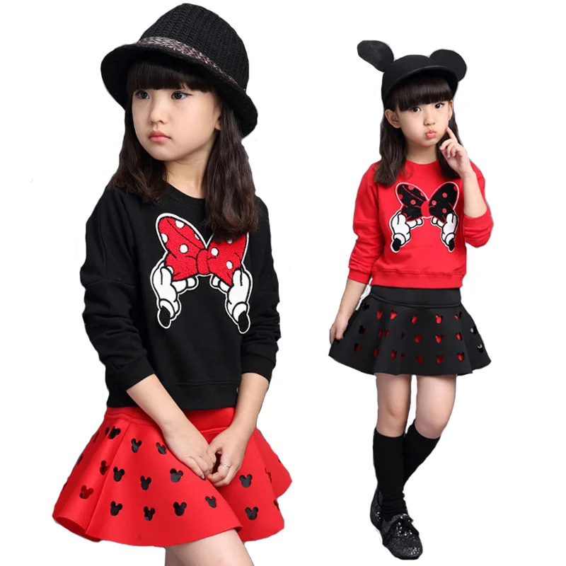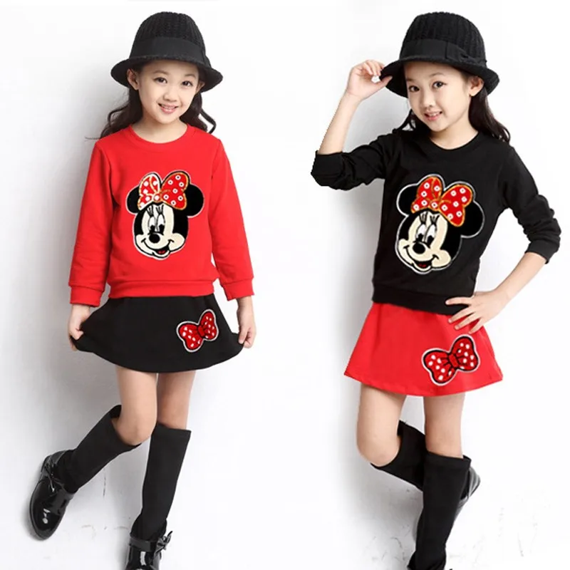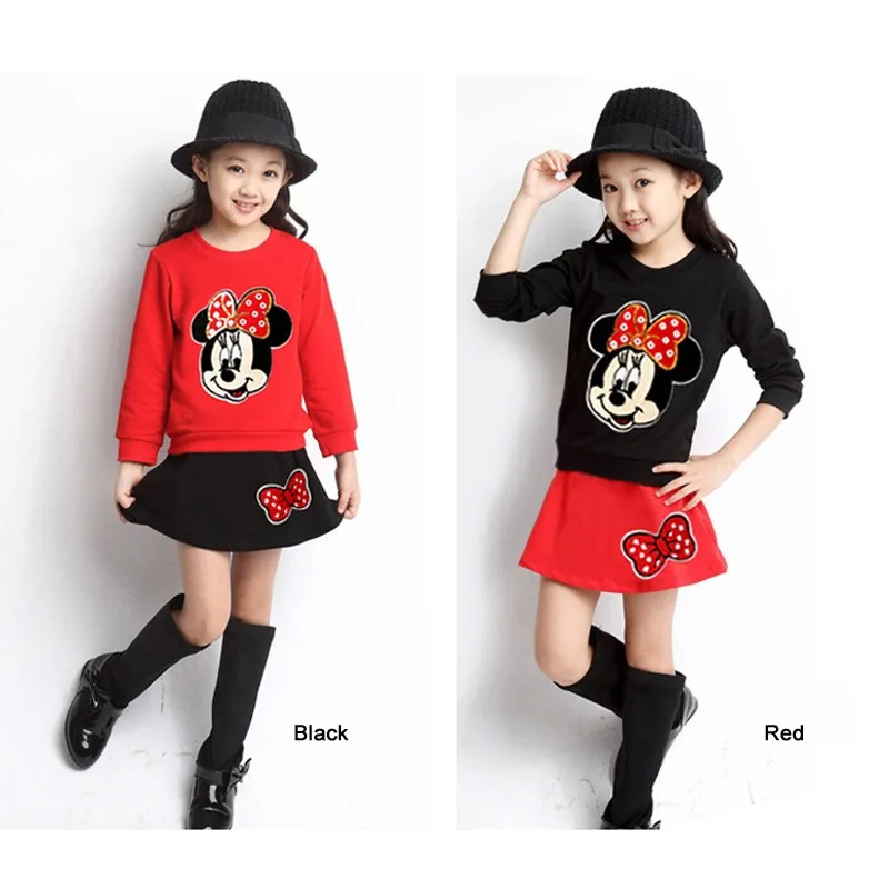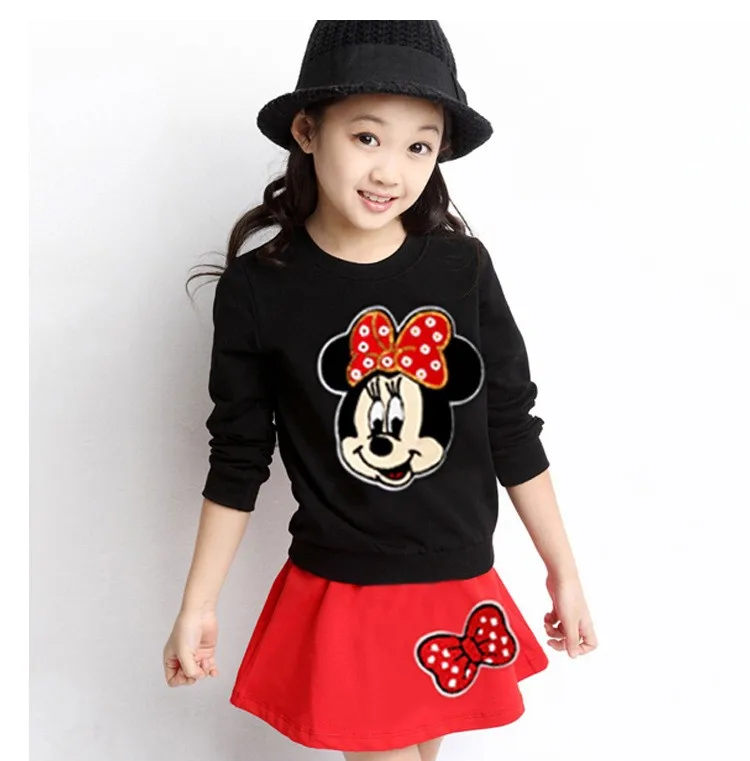 New Arrival Girls Minnie Clothing Set 2016 Spring Autumn 2pcs Long Sleeve Sweater+ Skirt Suits Kids Cotton Clothes Set 3-9Years