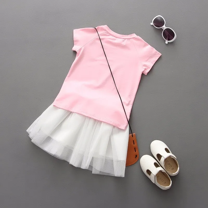 Home » » Children's Clothing » Girls Clothing » Girls Skirts » Hot Cute Summer Girls Clothing Sets Casual Cotton Short Sleeve T-shirt+yarn tutu Skirts Children Kids Girl Clothes 2pcs Set 2-7Y