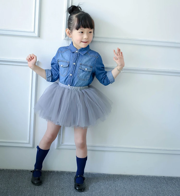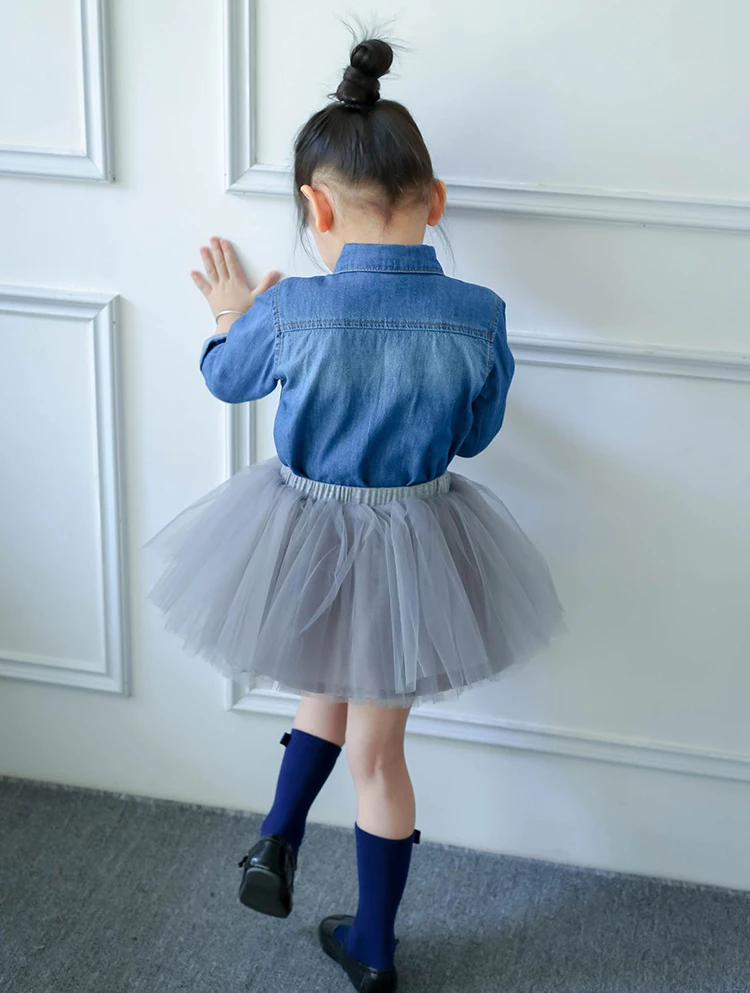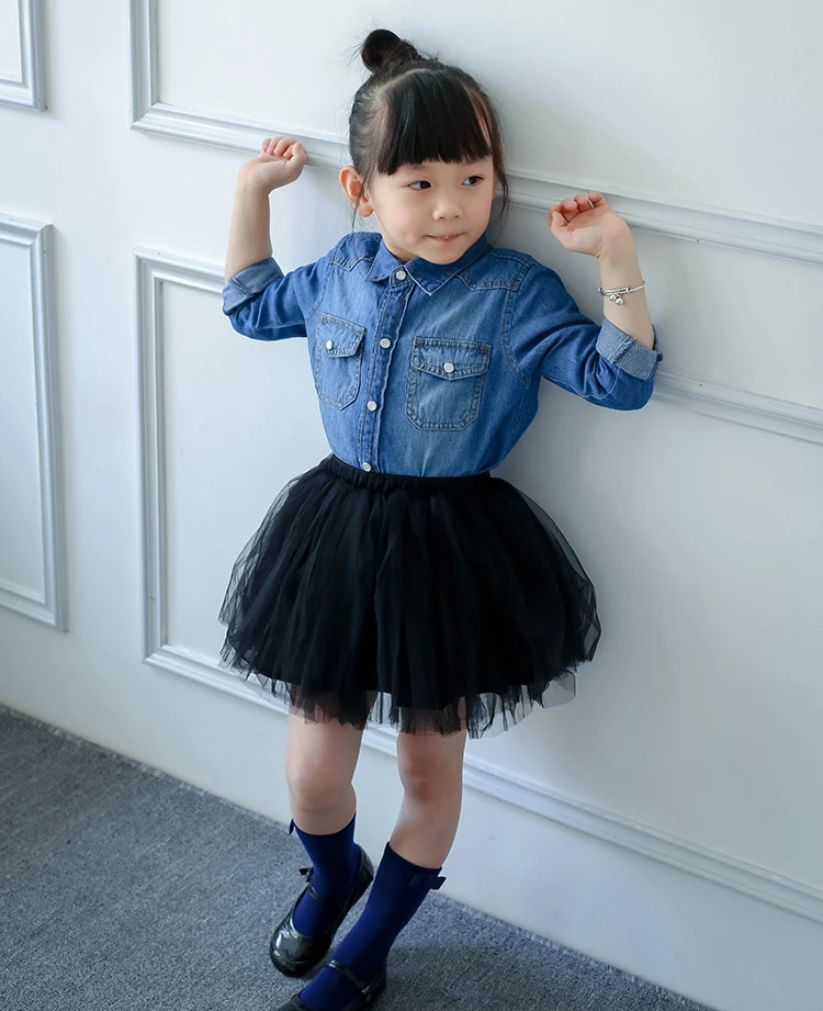 Kindstraum 2017 Baby Girl Shirt Denim 12M-4Y Spring Long Sleeve Kids Blouses for Toddler Girls Fashion Skirt Jeans Shirt