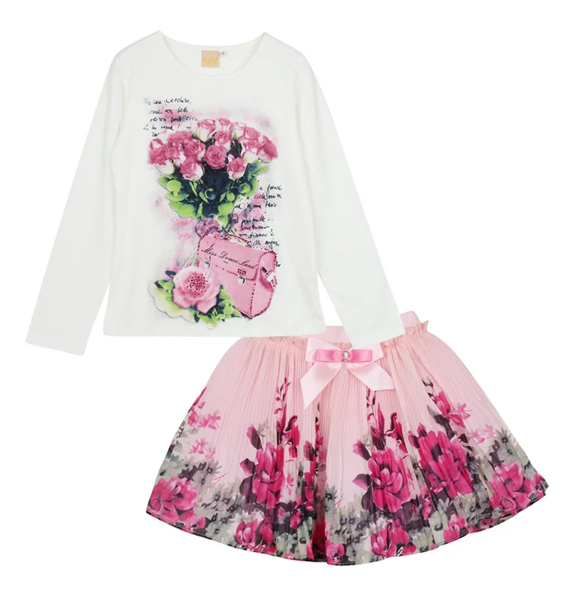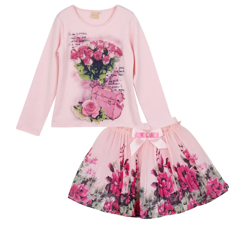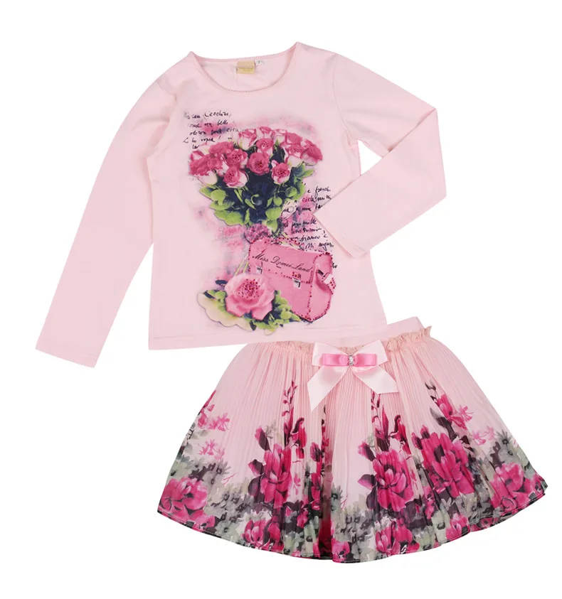 New Fashion 2017 Boutique Outfits Sets For Cute Kids Girl Print Floral Long Sleeve Shirts Tops+Tutu Skirts Sets With Bow Clothes