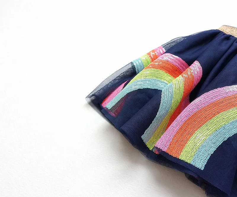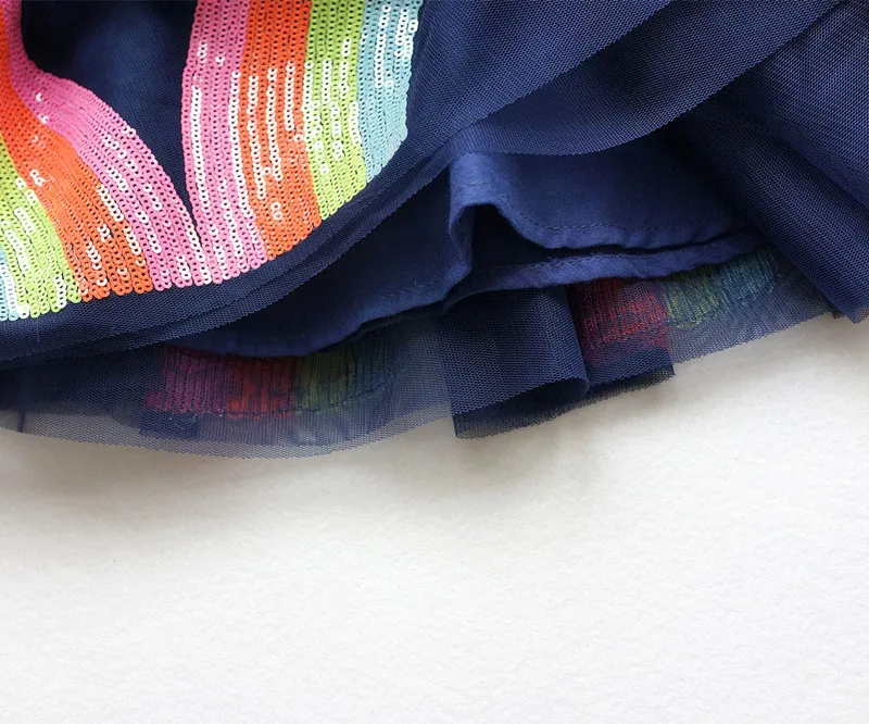 Size in age:1T/2T/3T/4T/5T/6T/7T/8T Size in height:80-130cm Material:Cotton,Mesh Description: Newest Baby Girl Skirt Kids Unicorn Sequined Rainbow Tutu Skirts Hot Selling Pettiskirt Tutu Custome Party Wedding Dance Skirt
