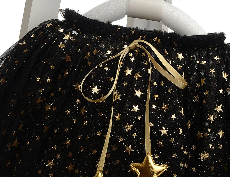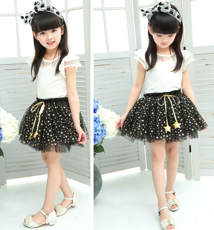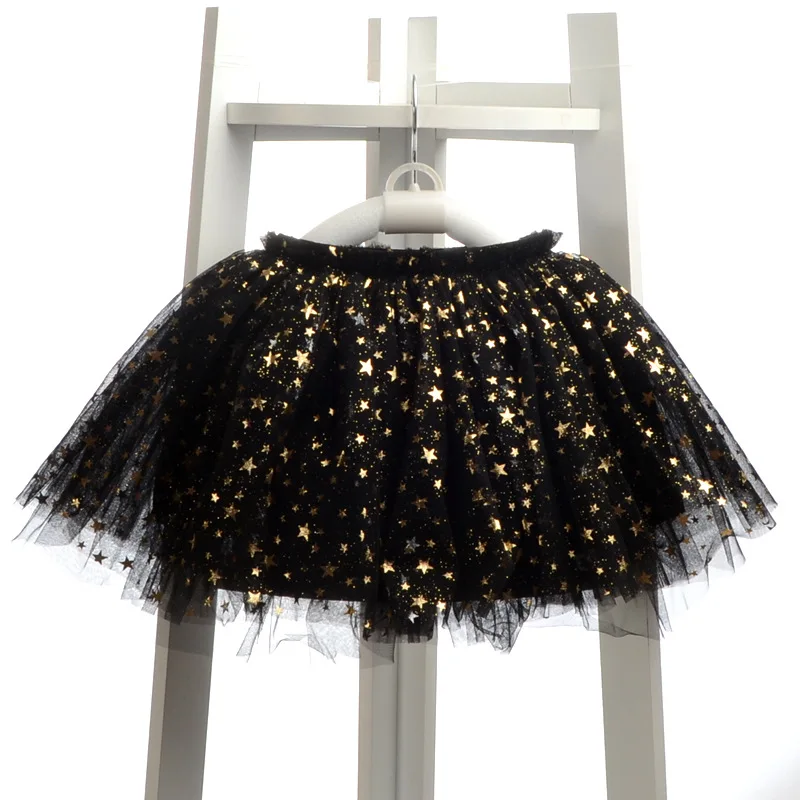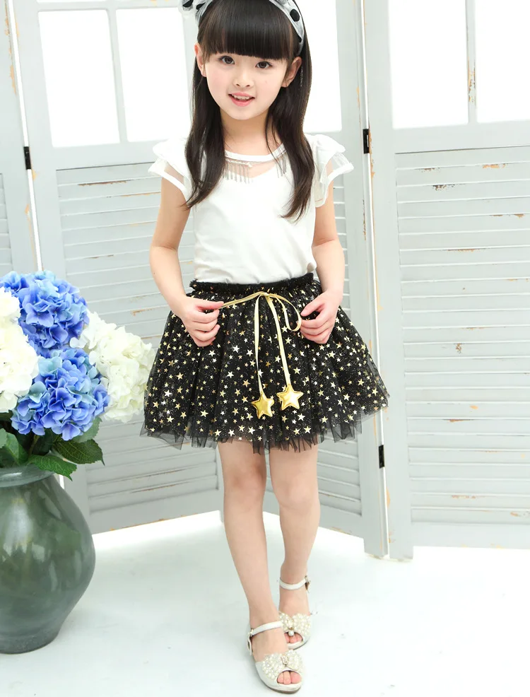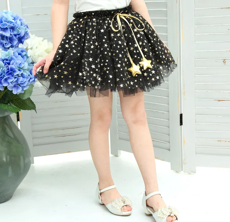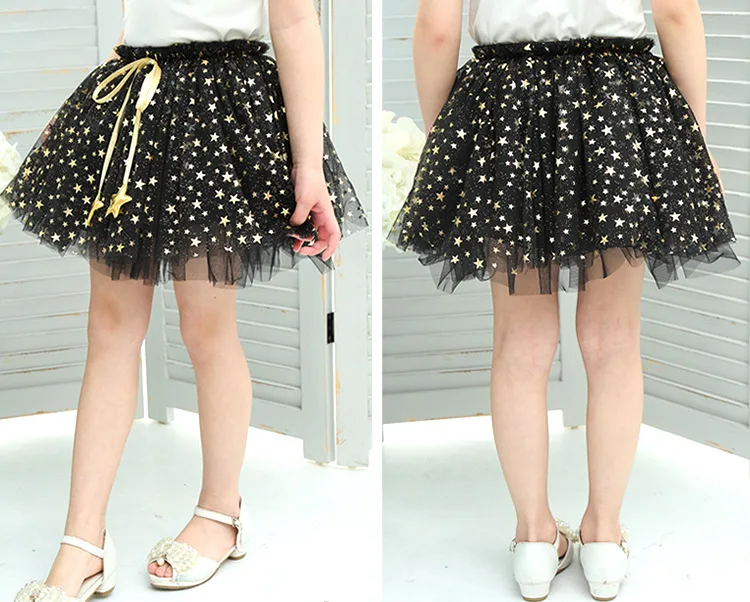 Size in age:2T/4T/6T/8T/10T/12T Size in height:100-150cm Material:Cotton,Mesh Description: Retail Fashion Baby Girl Skirts Appliques Stars Grow Ball Girls Skirts Cute Girl Clothes Lolita TUTU Mesh Tulle Skirts black