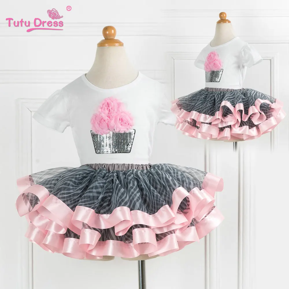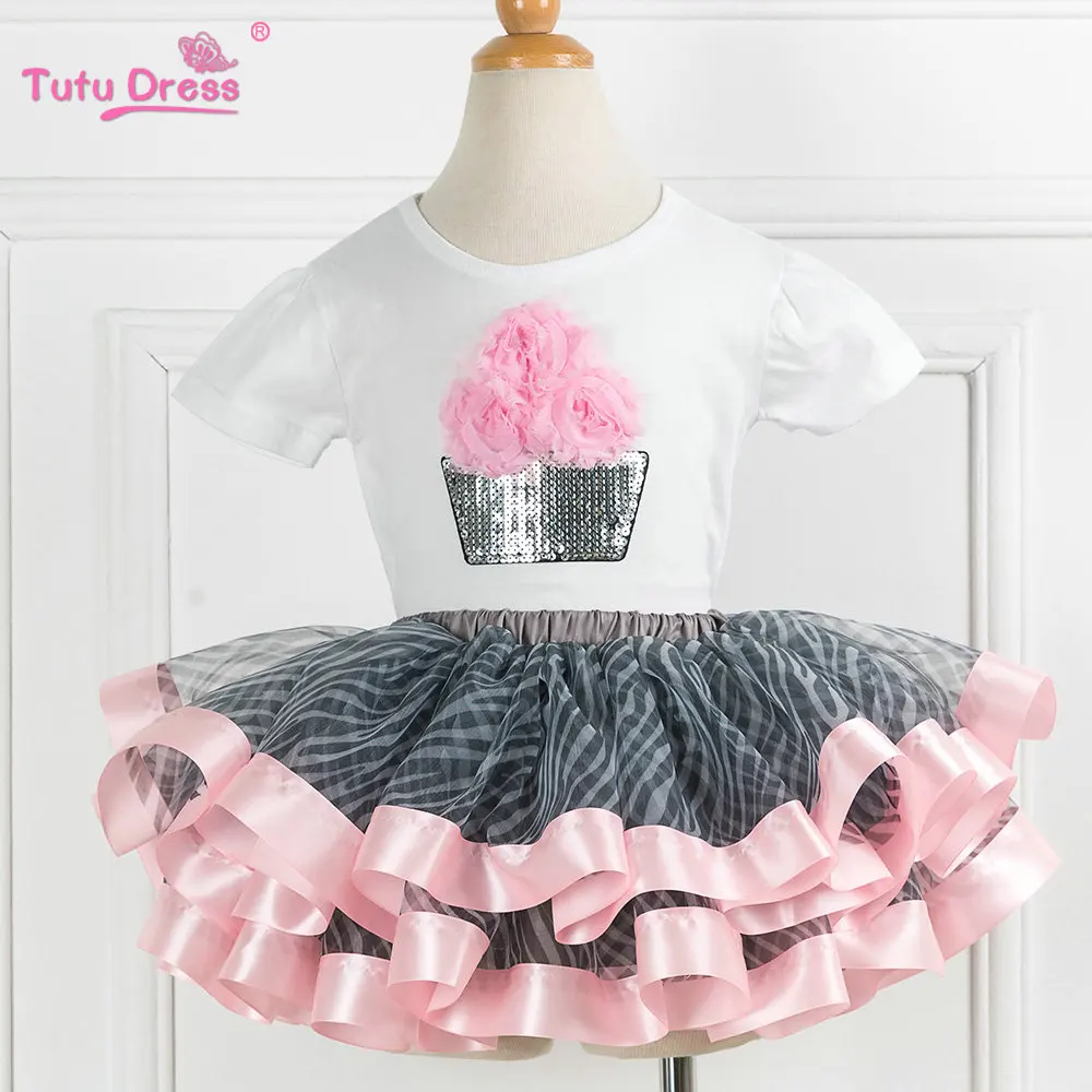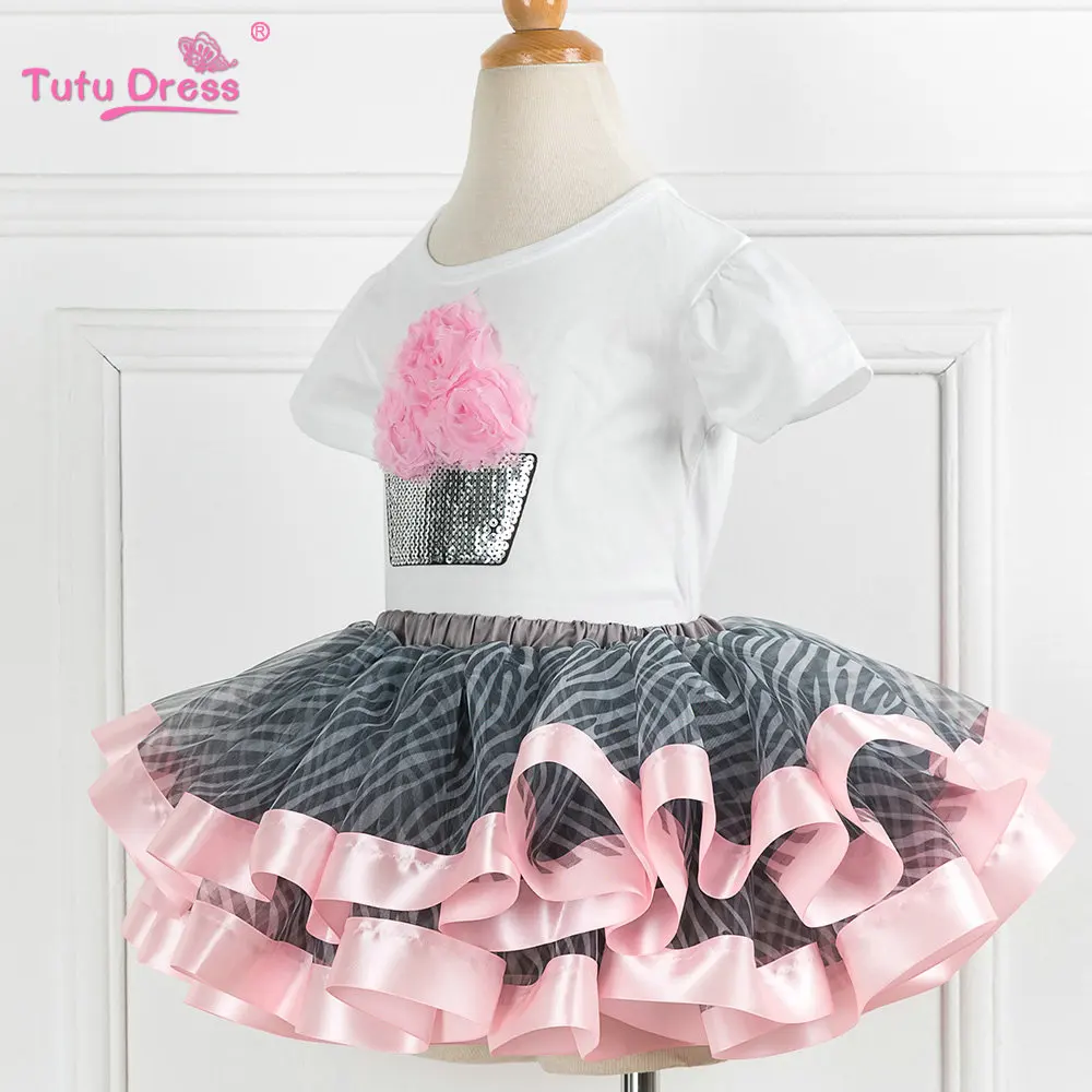 Super Fluffy Girls Birthday Tutu Set Summer Toddler Girls Clothing Sets Flower Tshirt +skirt 2 Pcs Kid Suits Children Clothing