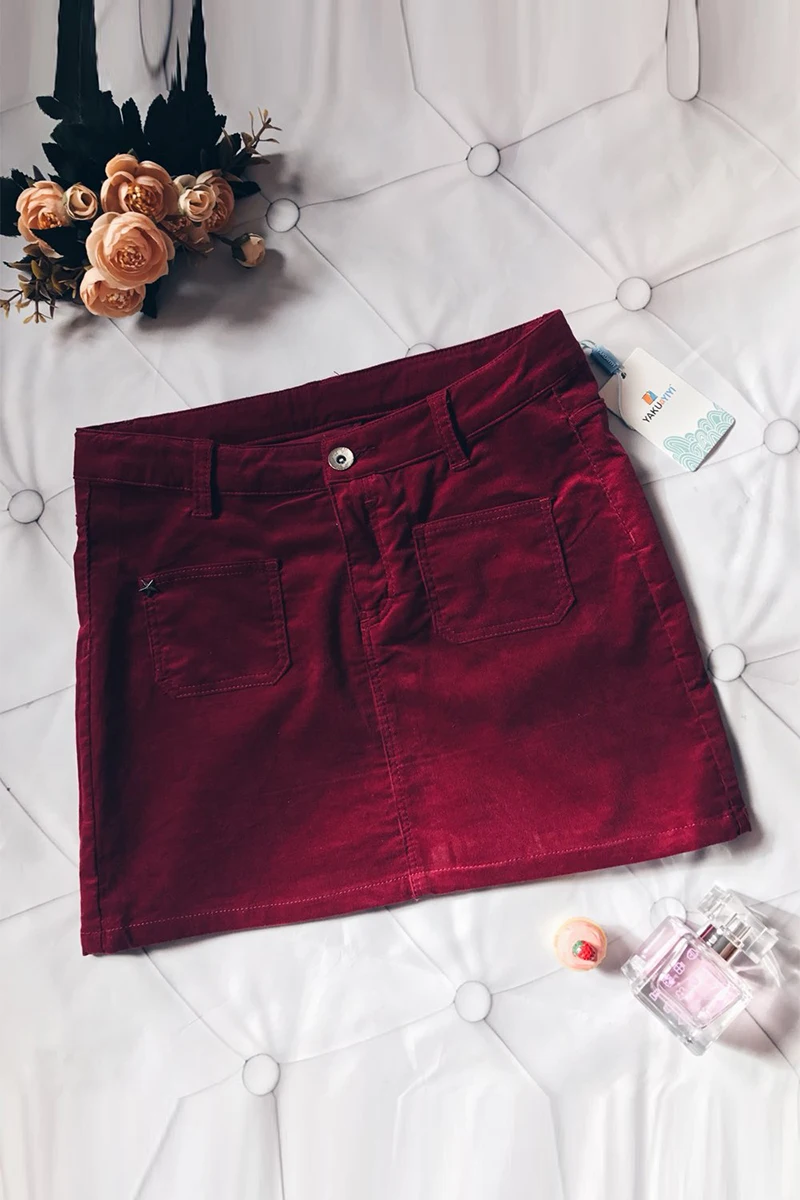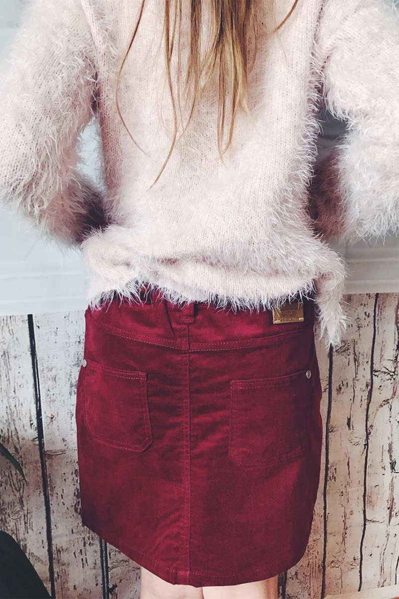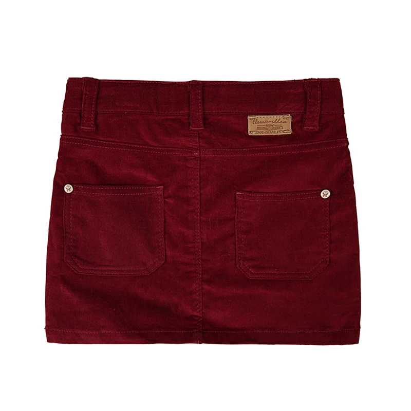 YKYY YAKUYIYI Brand New Summer Solid Dark Red Bodycon Girls Skirt Casual Pocket Botton Pencil Girl Skirt Children Clothing