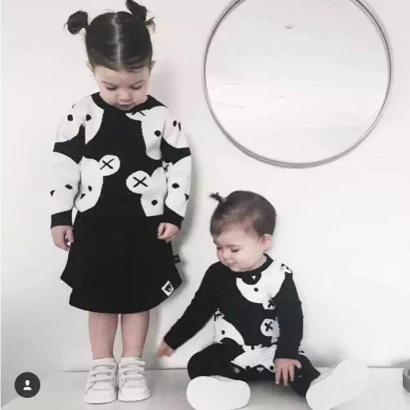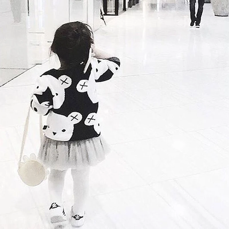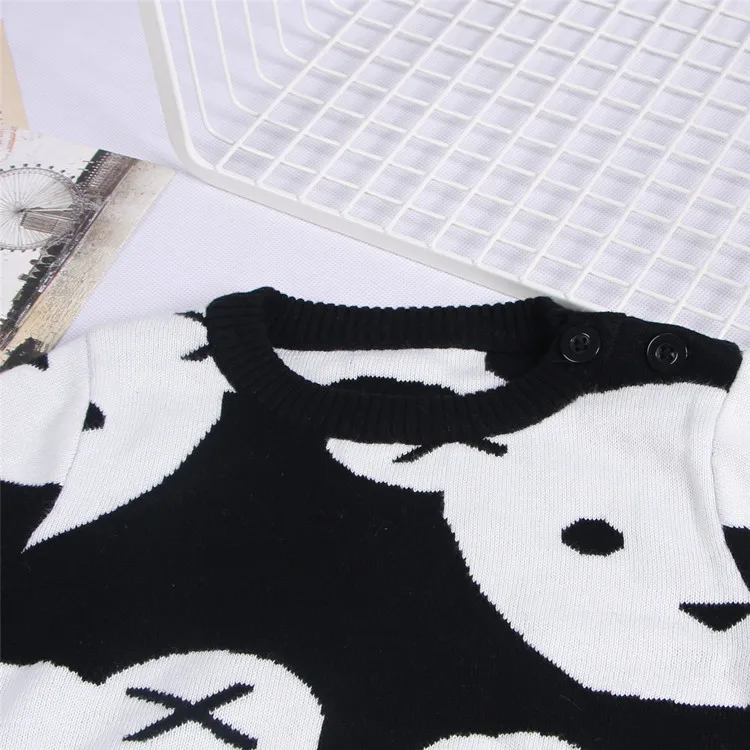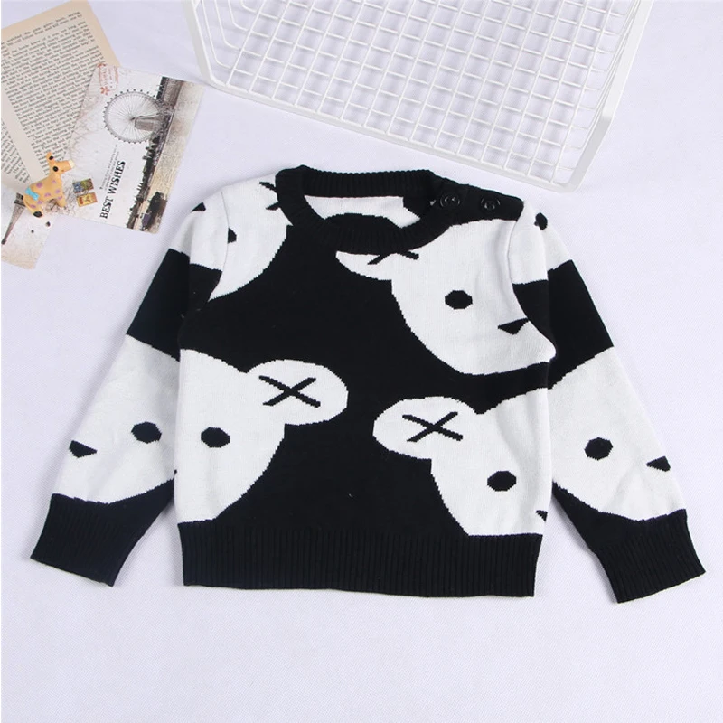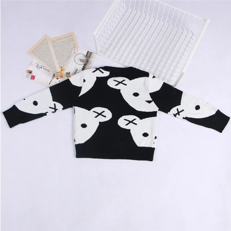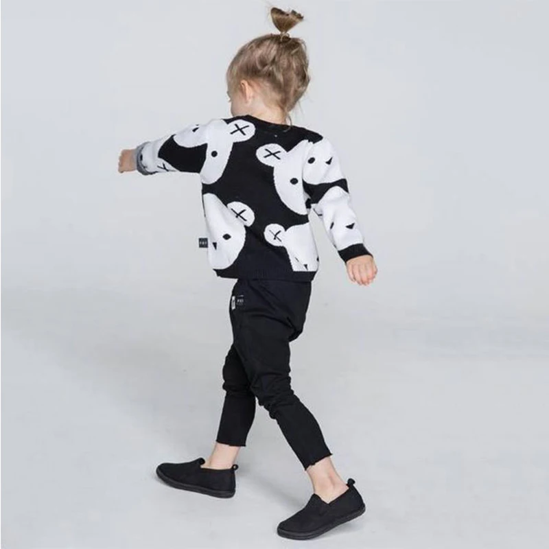 0-6Yrs Baby Girl Clothes Black White Bear Sweater Cartoon Cotton Knitting Woolen Children Boys Autumn Winter Outerwear Knit