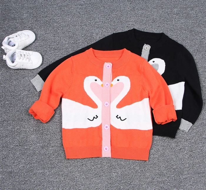 1-6yrs Baby Girls Swan Cardigan Sweater Children Outerwear & Coats New 2017 Autumn Sweater Fashion Kids Knit Coat Girls Cardigan