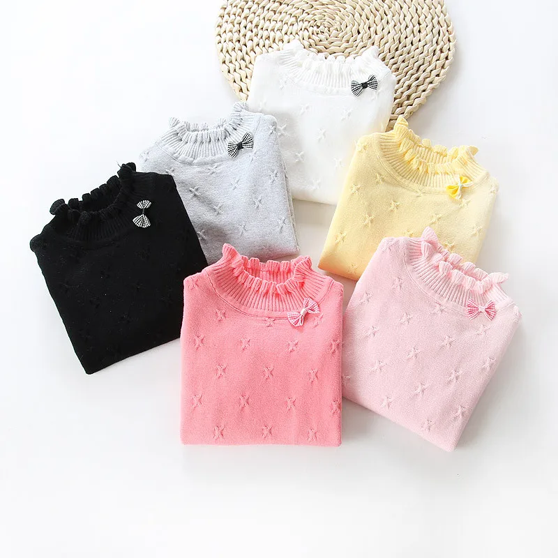 2-5 Years Baby Girls Sweaters 100% Cotton Long Sleeve Bow Pullover Spring Autumn Winter Children Clothing Wholesale Retail
