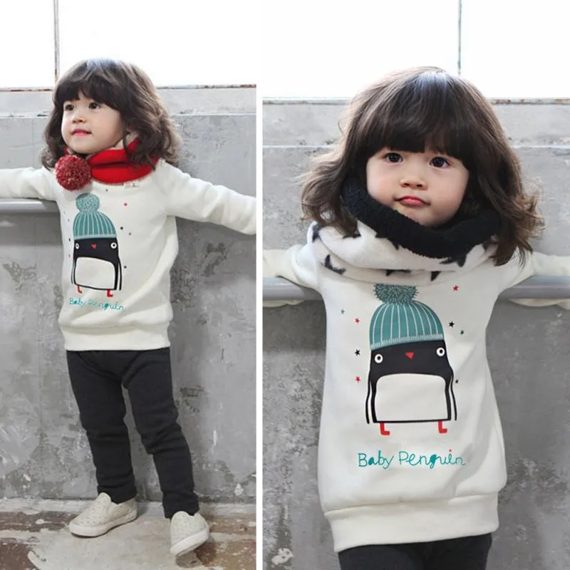 2016 Baby Winter Autumn Penguin Print Sweatshirts Boys Girls Cotton Jumper Tracksuits Tops Hoodies Baby Clothes