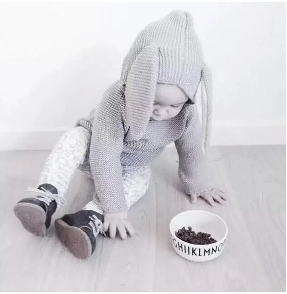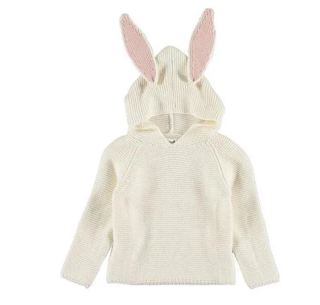 2017 New Children Sweaters Rabbit Ears Boys Girls Sweater With Hooded Wool Cotton Knitwear Winter Infant Sweater Kids Clothing