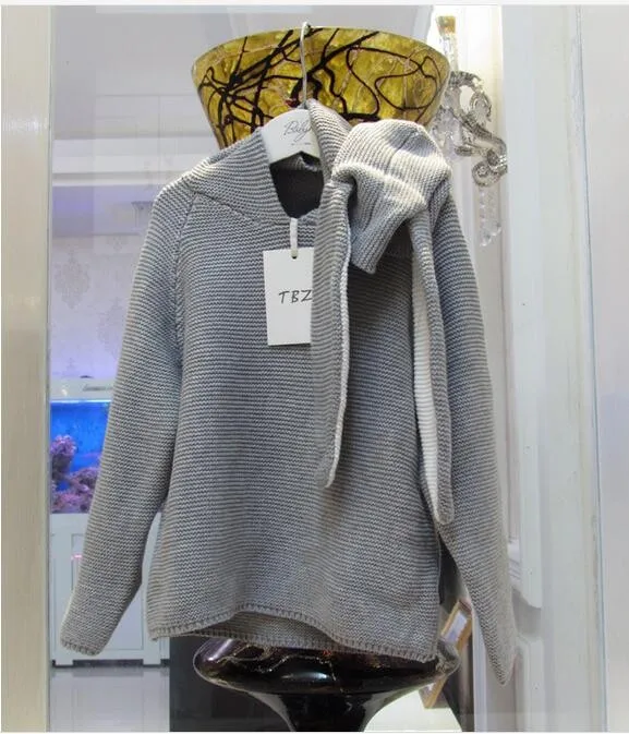 2016 New Children Sweaters Rabbit Ears Boys Girls Sweater With Hooded Wool Cotton Knitwear Winter Infant Sweater Kids Clothing