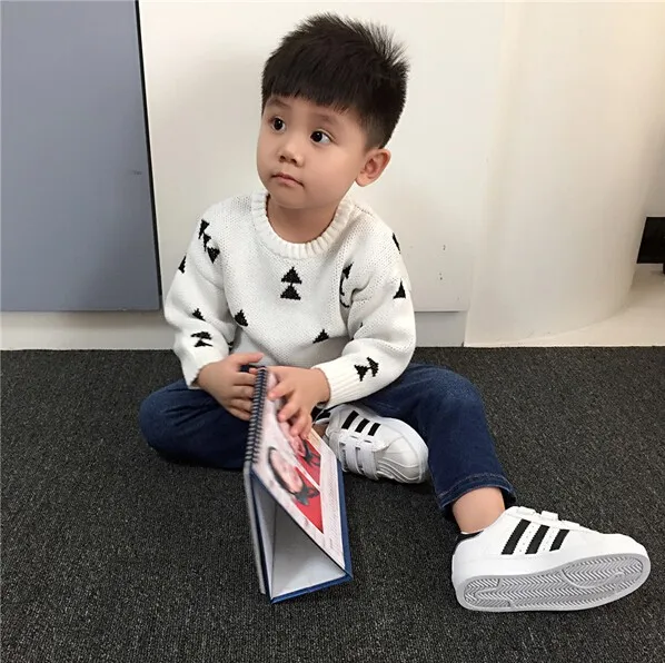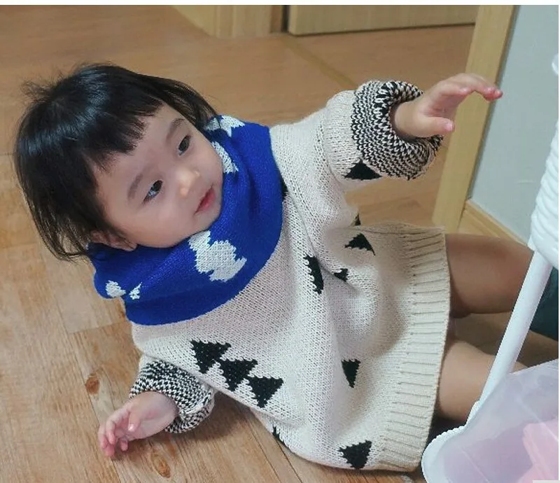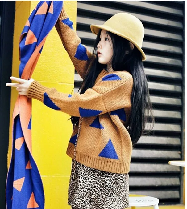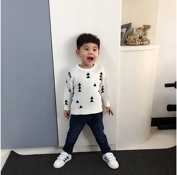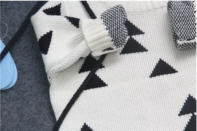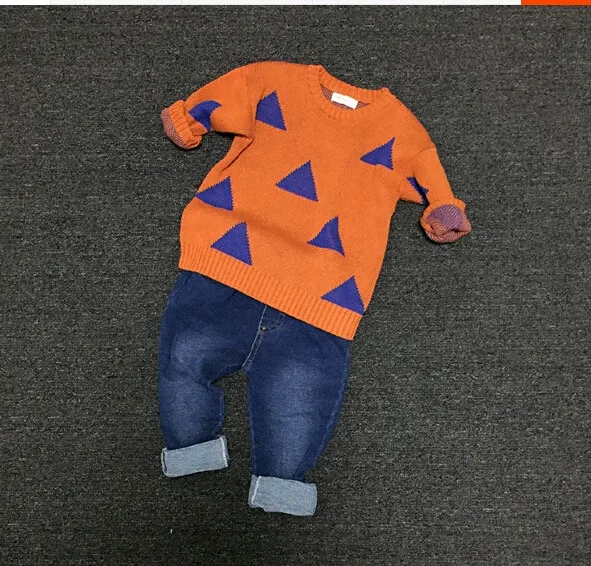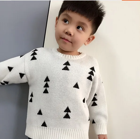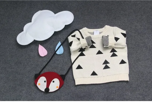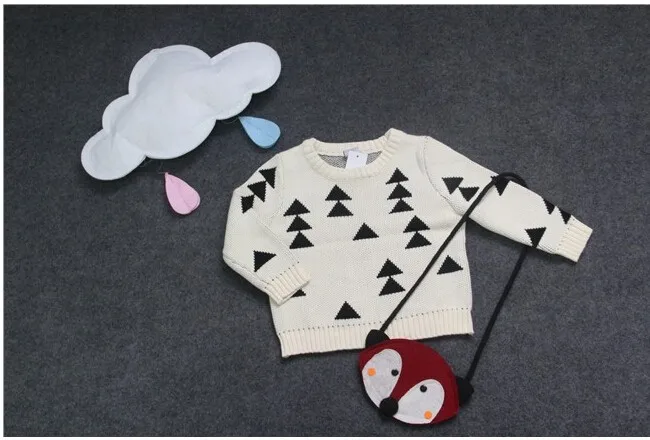 2017 New KIDS Boy Girls Sweater Thick Triangle Vintage Sweaters Bobo Style Baby Girls Clothes Jumper Spring Autumn Kids Costume