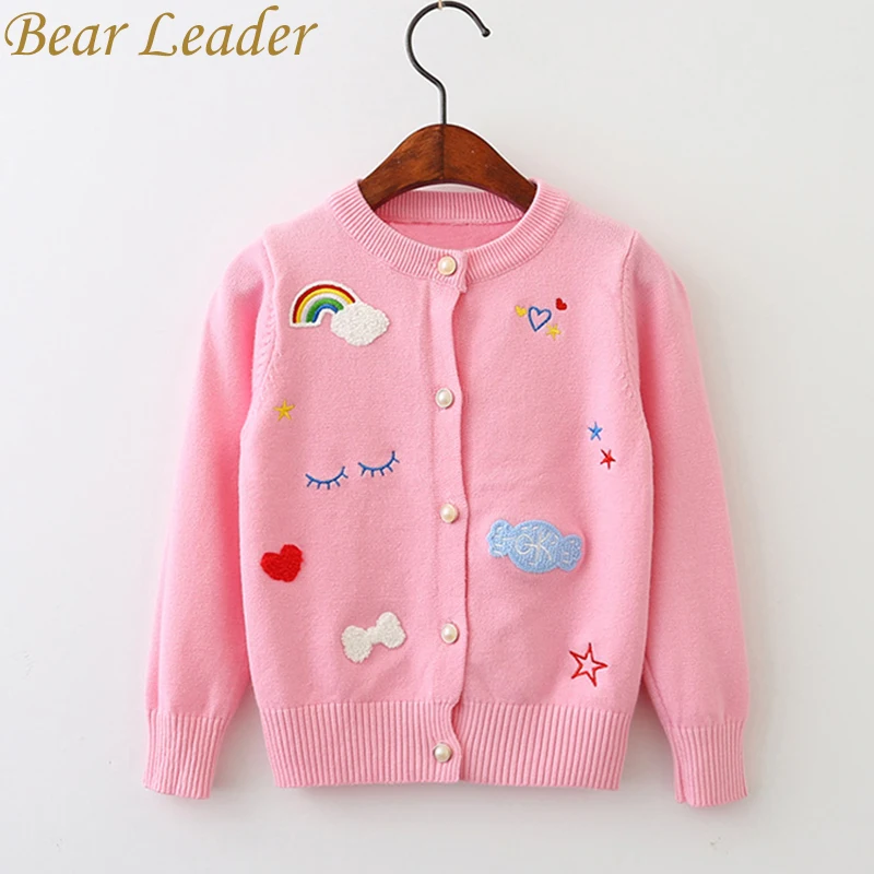 Bear Leader Girls Sweaters 2017 New Autumn Girls Clothing Long Sleeve Outerwear Cute 3D Print Pearl Button Design Coats For 3-7Y