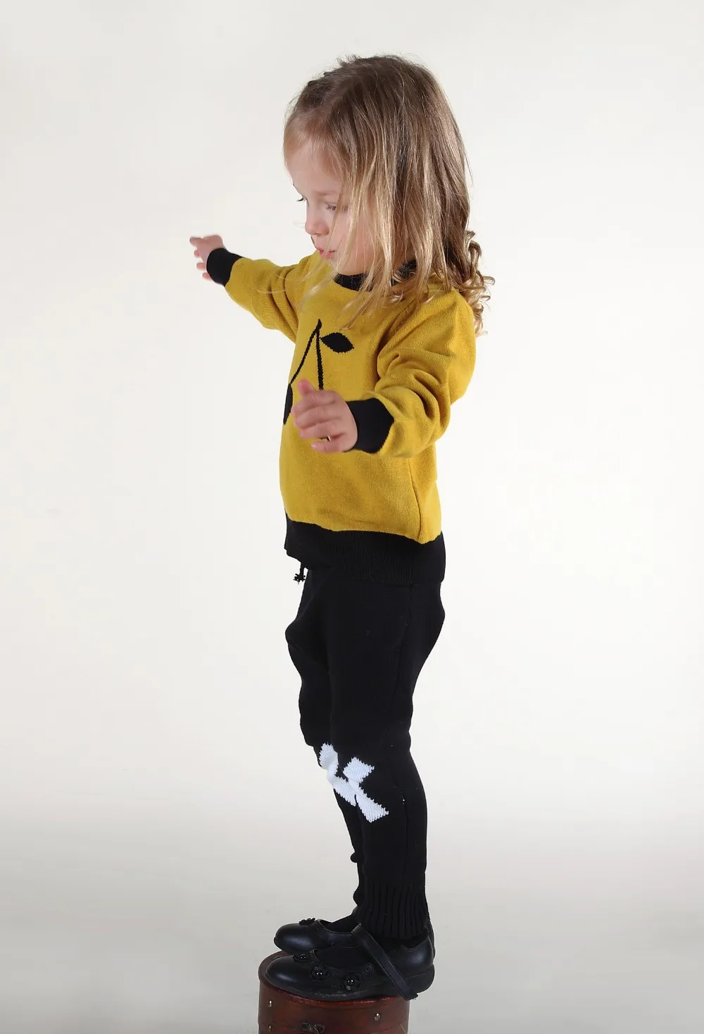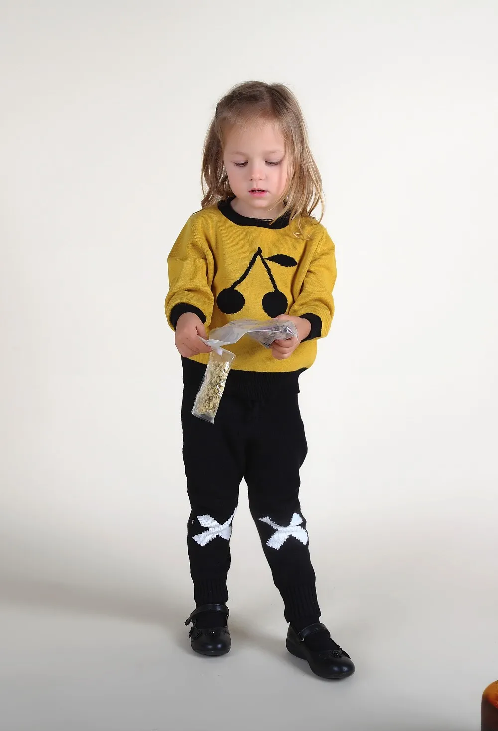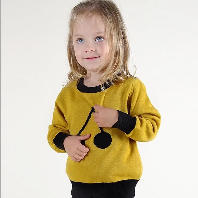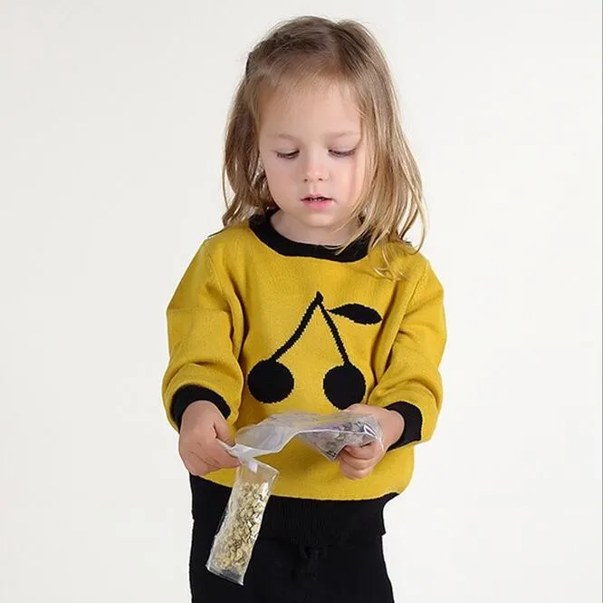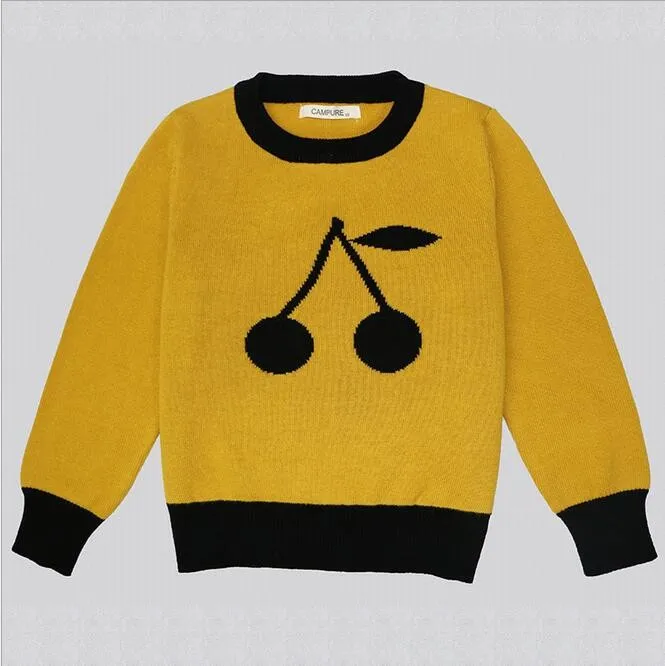 Campure 2017 Cherry Pattern Children Warm Tops Kids Boys and Girls Long Sleeve Pullovers Sweater 100%Cotton Black Yellow Sweater