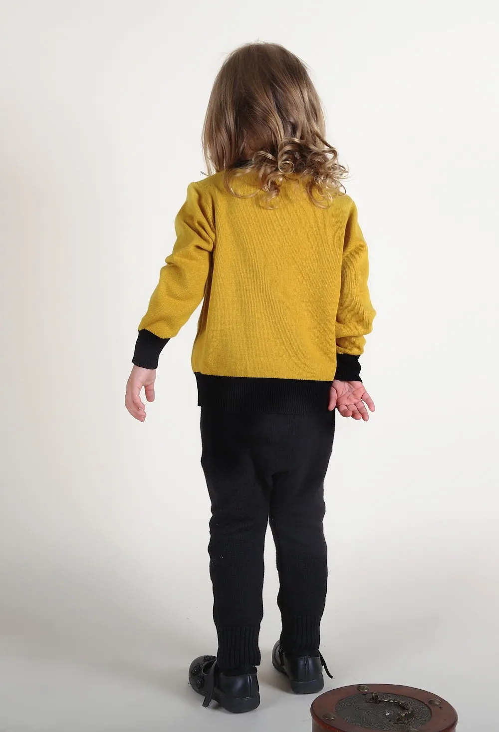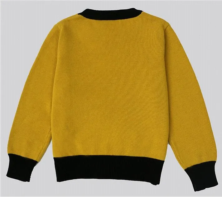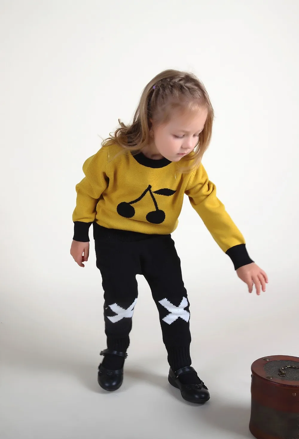 Campure 2017 Cherry Pattern Children Warm Tops Kids Boys and Girls Long Sleeve Pullovers Sweater 100%Cotton Black Yellow Sweater
