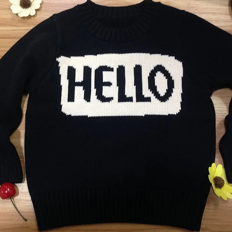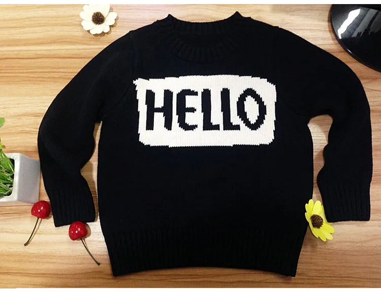 Home » » Children's Clothing » Girls Clothing » Girls Sweaters » Cute Baby Girls Boys Hello Letter Style Sweaters Kids Long Sleeved Knit Cardigan Sweaters Children Autumn Casual Coat Tops 1-7Y