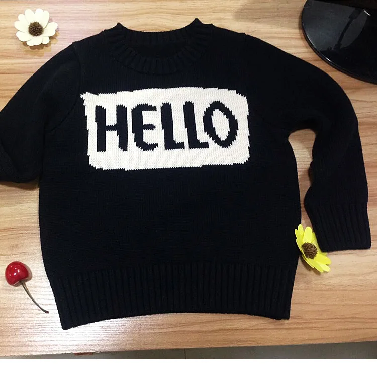 Cute Baby Girls Boys Hello Letter Style Sweaters Kids Long Sleeved Knit Cardigan Sweaters Children Autumn Casual Coat Tops 1-7Y