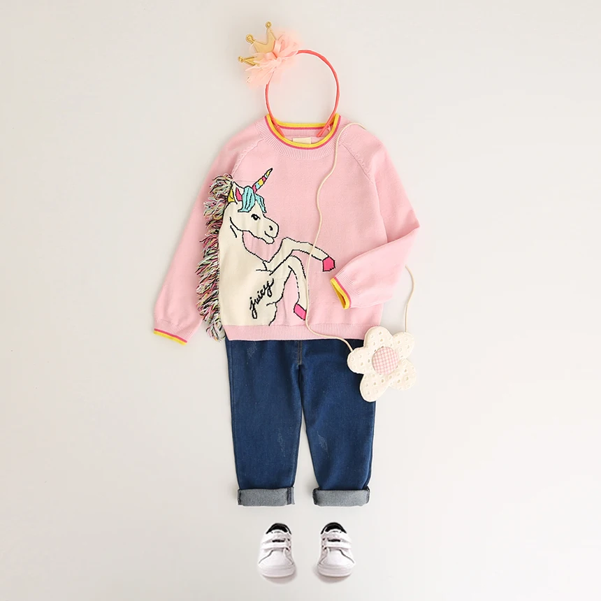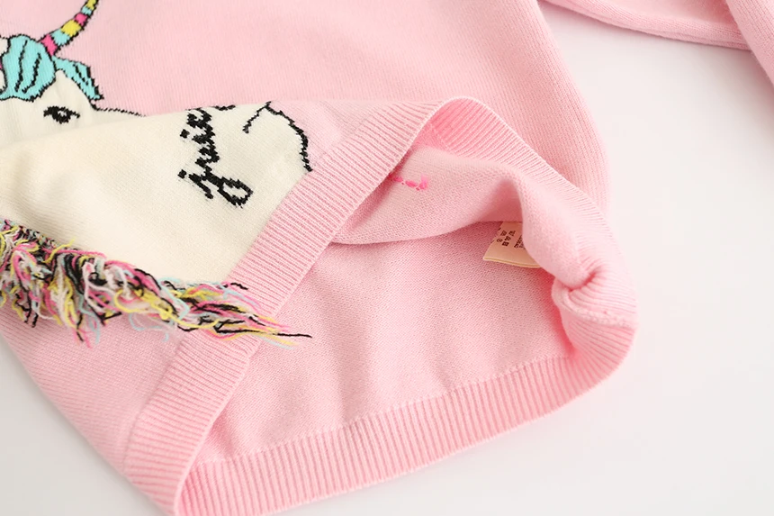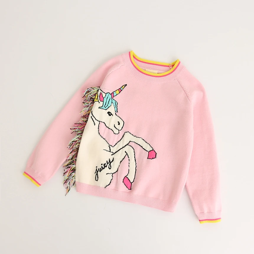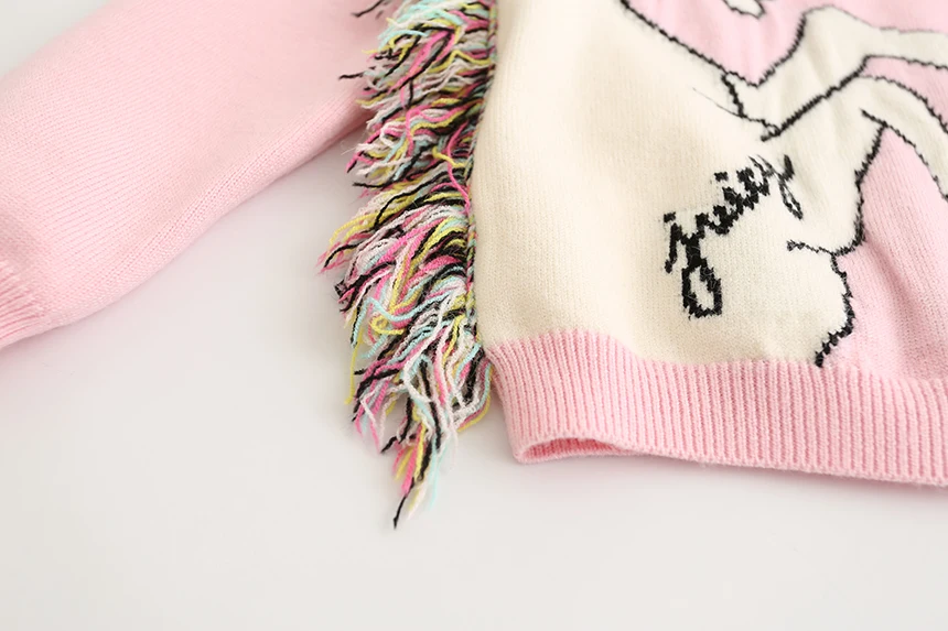 Girls Tassel Sweaters Autumn Clothing Winter Pullover Horse Sweate r Cartoon Unicorn Long Sleeve Outerwear O-neck Kids Knitwear
