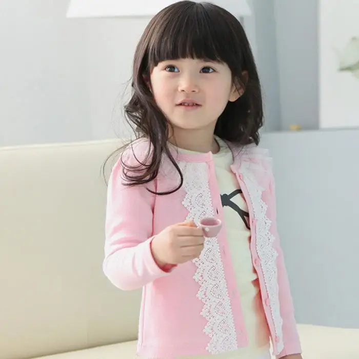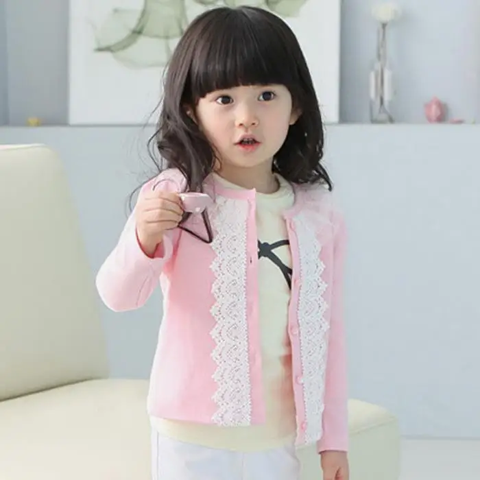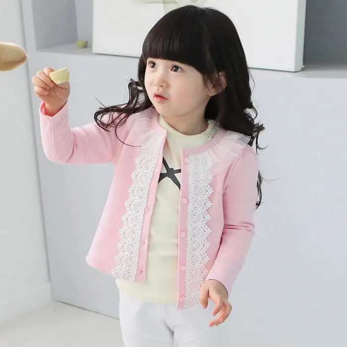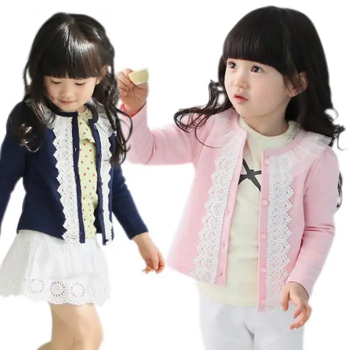 Clothes Type: Girls Cardigan Sweater Baby Infant Knitted Cardigans Lace Splice Jacket Coat