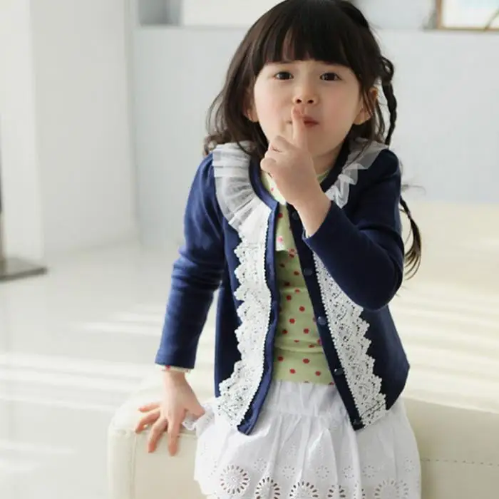 Hot Sale Autumn Spring Girls Cardigan Sweater Baby Infant Knitted Cardigans Lace Splice Jacket Coat FJ88