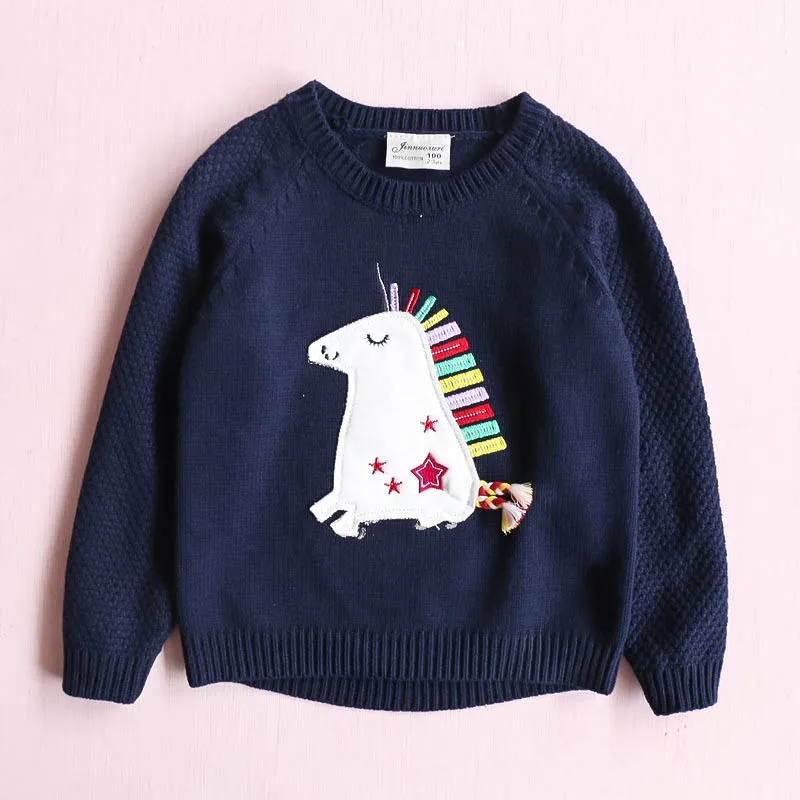 Hurave 2017 fashion girls kids sweater print cartoon sweater for toddler children clothing autumn