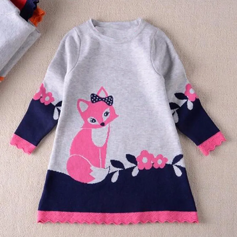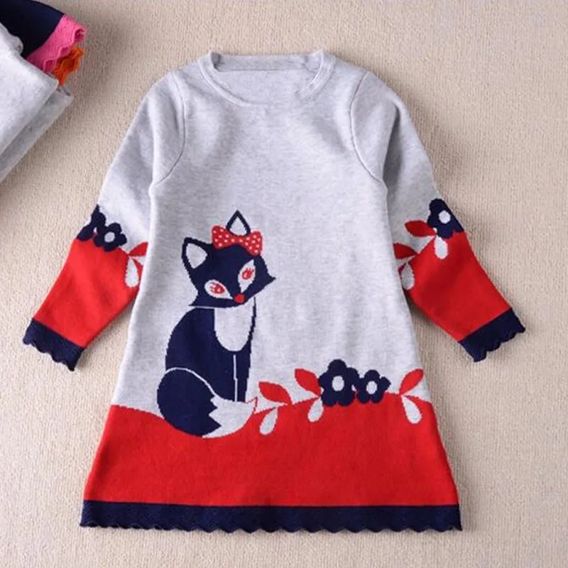 Home » » Children's Clothing » Girls Clothing » Girls Sweaters » Kids Winter Warm Dress Fashion Girl A-line fox Sweater Dresses Knitted Long sleeve O Neck Children Clothing Party Wear Dress 19