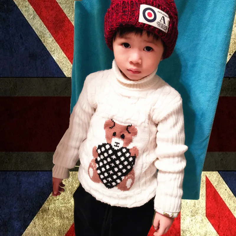Hot sell Boys and Girls Autumn Winter Warm Cartoon Bear Solid Turtleneck Sweaters.