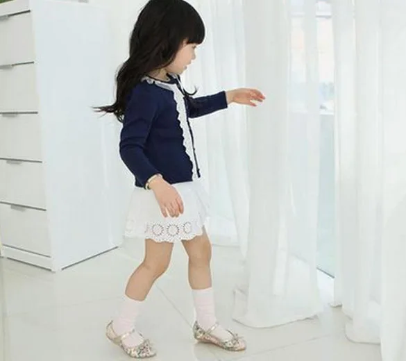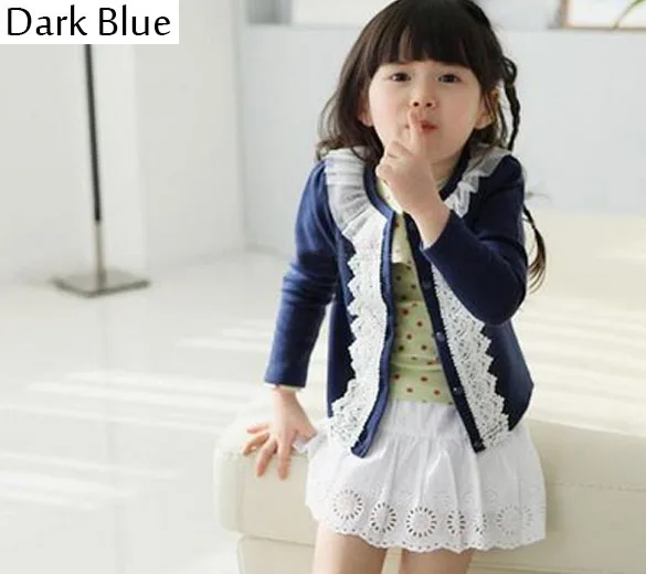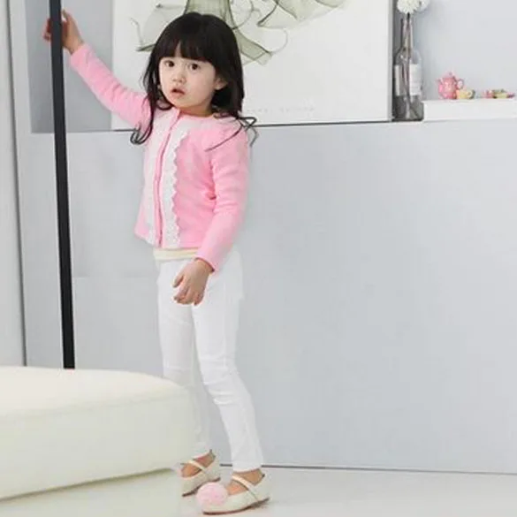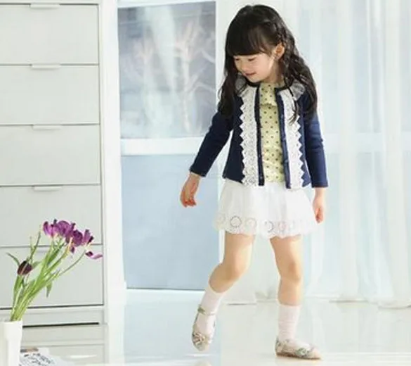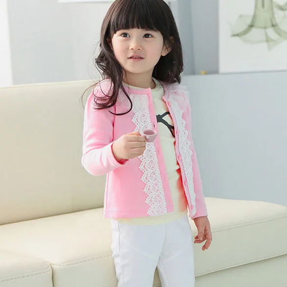 Fashion Children Kids Girl’s Wear Long Sleeve Round Lace Collar Casual Coat
