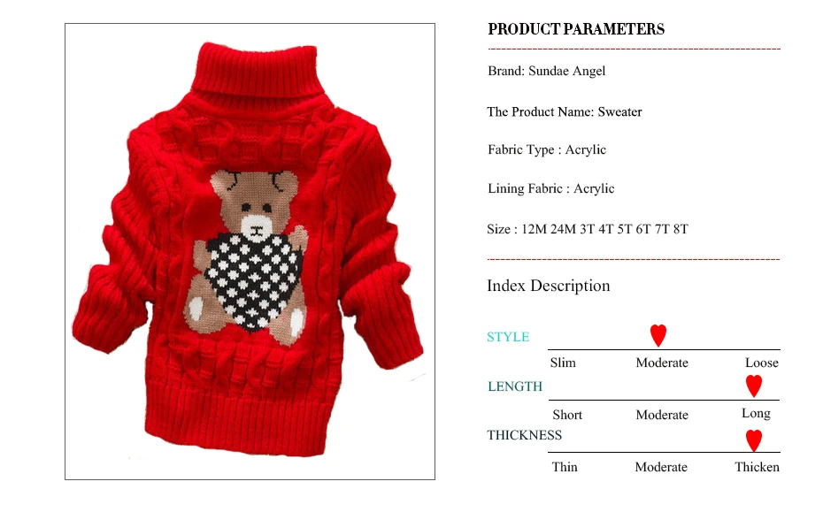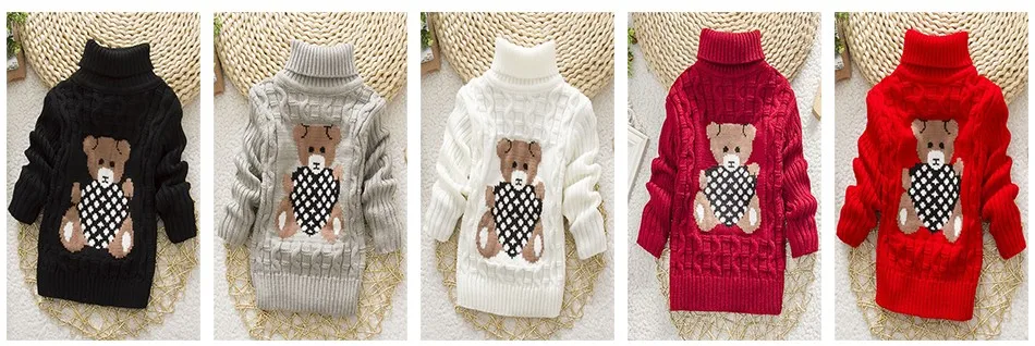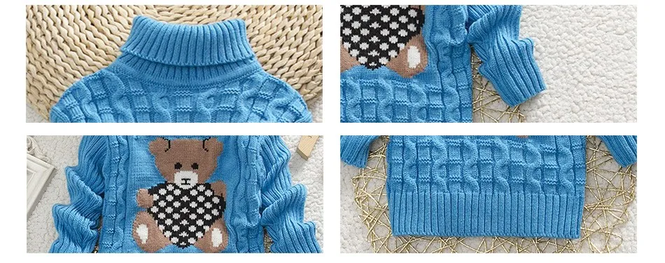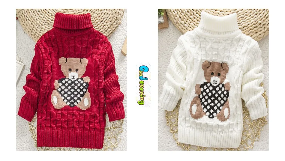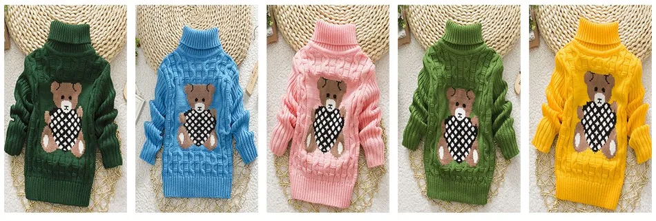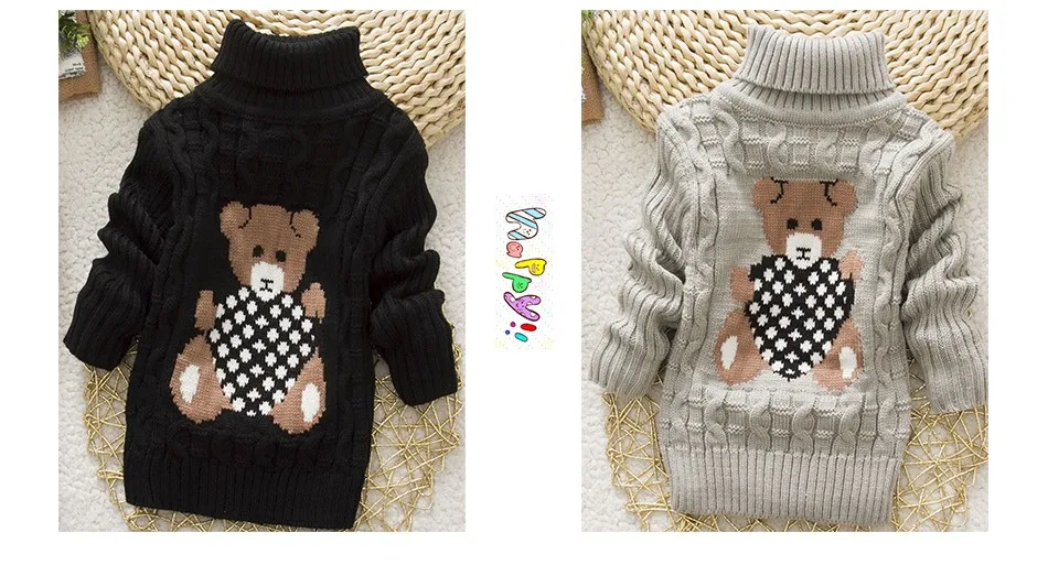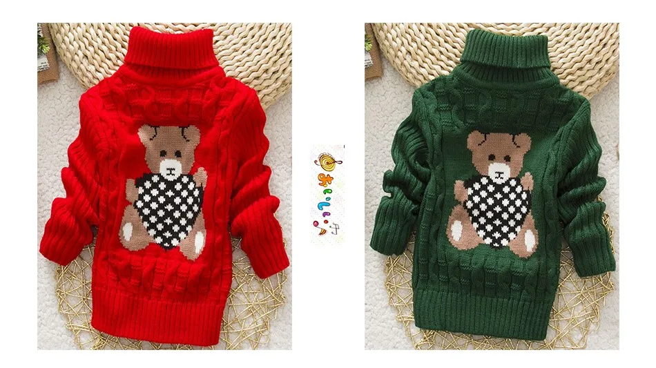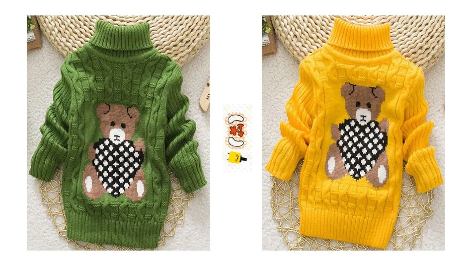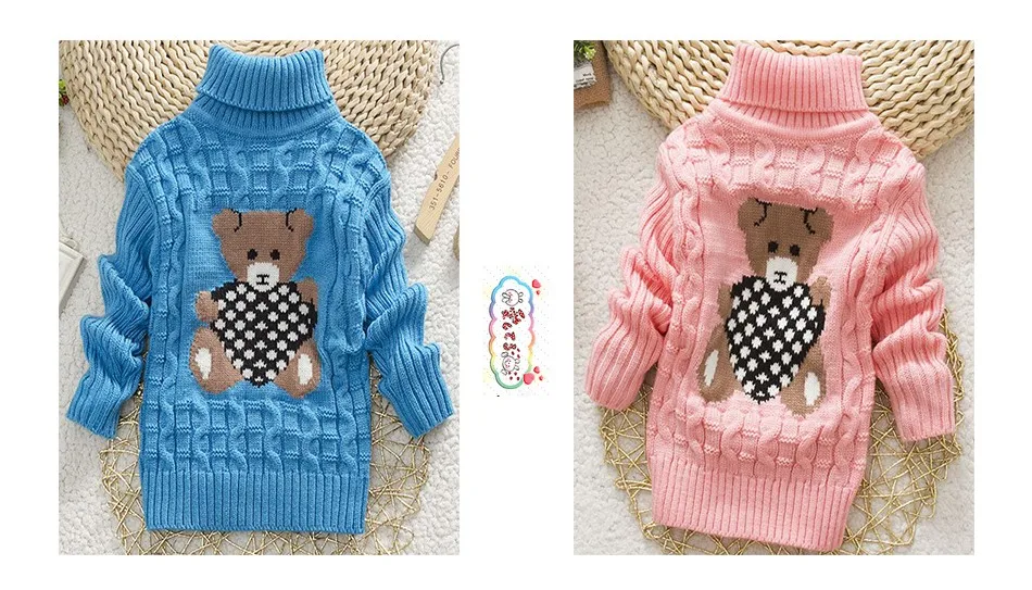 Sundae Angel Casual Boy Girl Sweaters For Kids Long Sleeve Wool Turtleneck Cartoon Pattern Spring Autumn&Winter Girls Sweater
