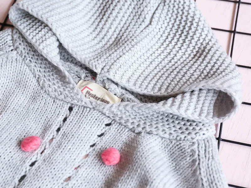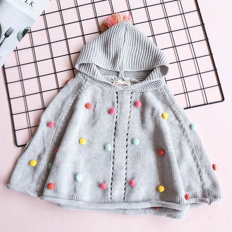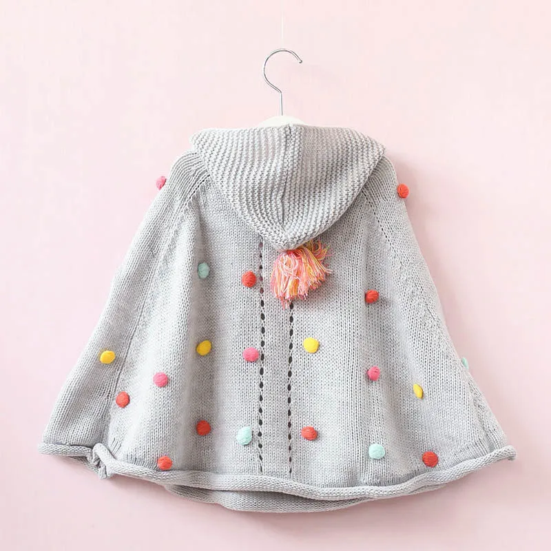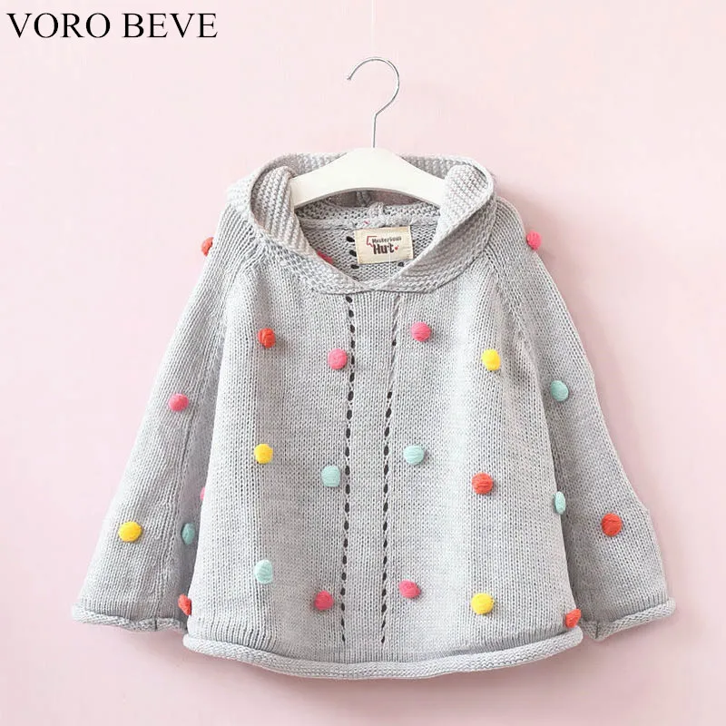 VORO BEVE 2017 Autumn Girls Hooded Hair Ball Knit Children Cloak Kids Clothes Baby Girls Fashion Sweater Coat Children Clothing